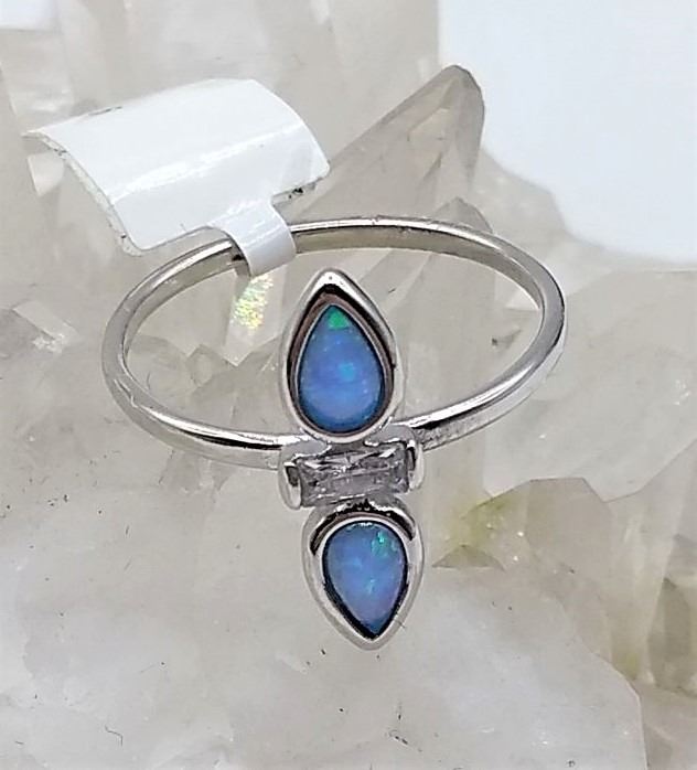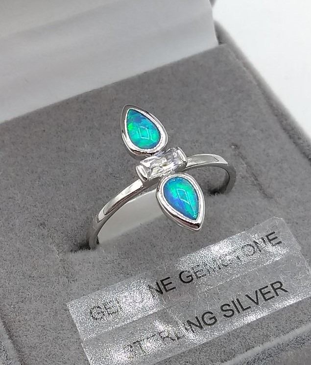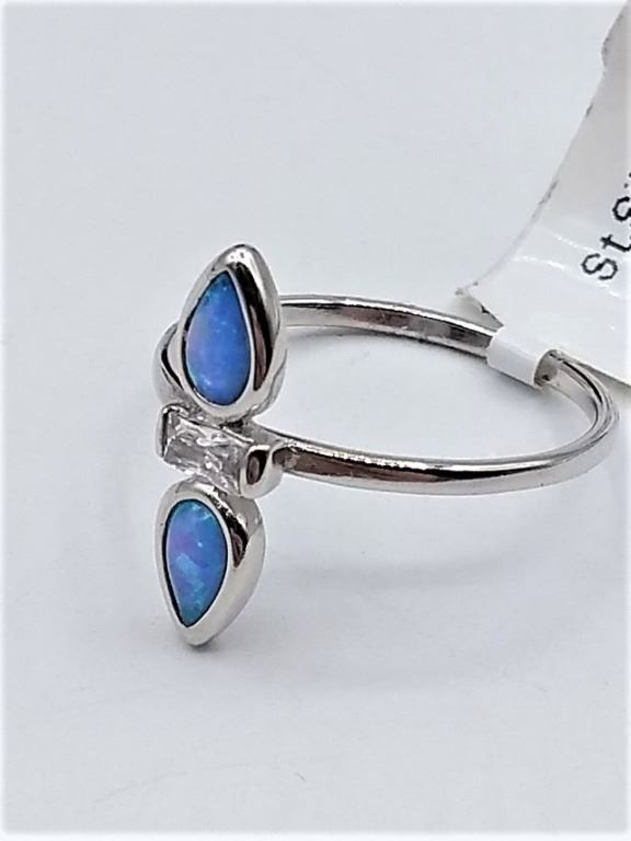 STERLING SILVER RHODIUM PLATED, CREATED OPAL AND CZ RING W/ APPRAISAL $590