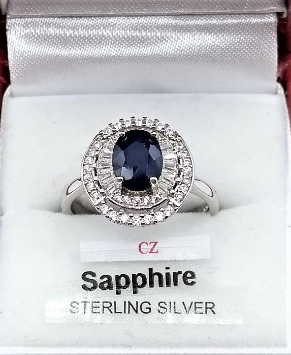 STERLING SILVER RING SET W/ GENUINE SAPPHIRE AND 48 CZ W/ APPRAISAL $935