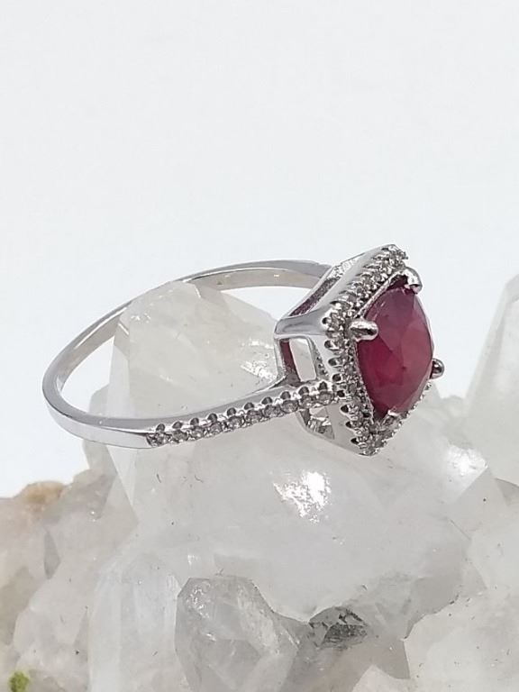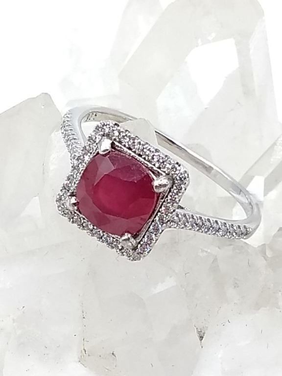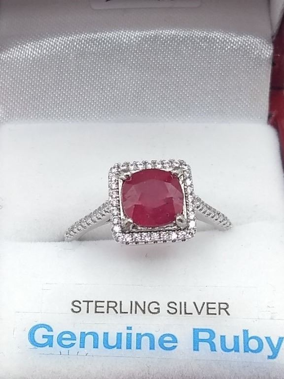 STERLING SILVER RING W/ RUBY GEMSTONE AND CZ W/ APPRAISAL $1120