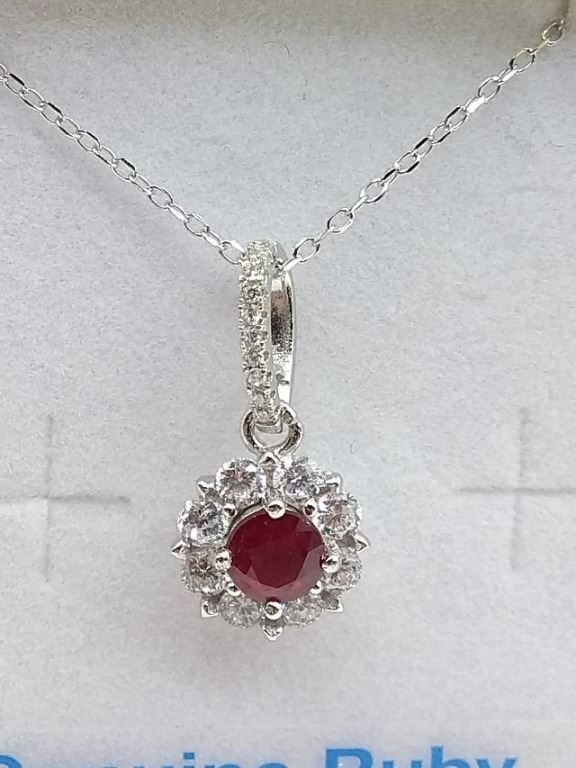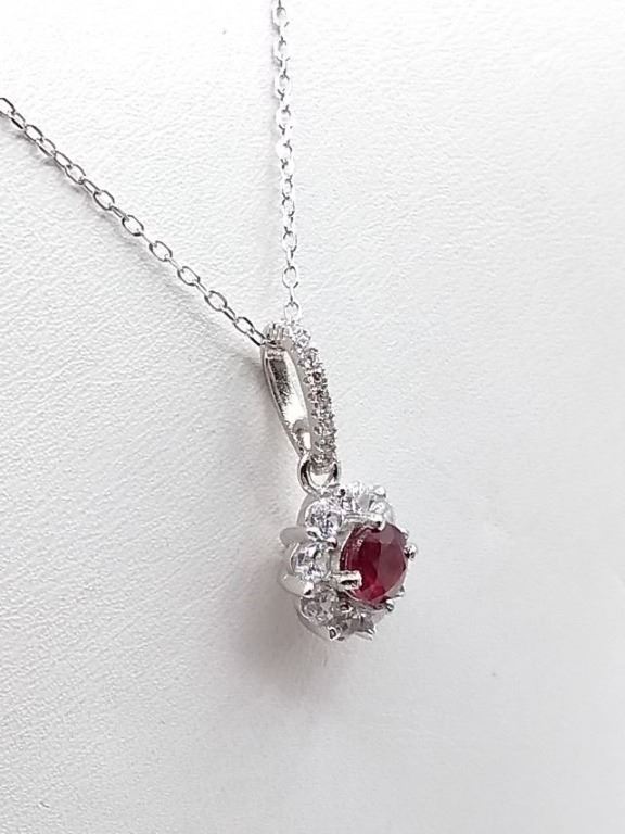 STERLING SILVER RUBY AND CZ PENDANT W/ 16" CHAIN W/ APPRAISAL $780
