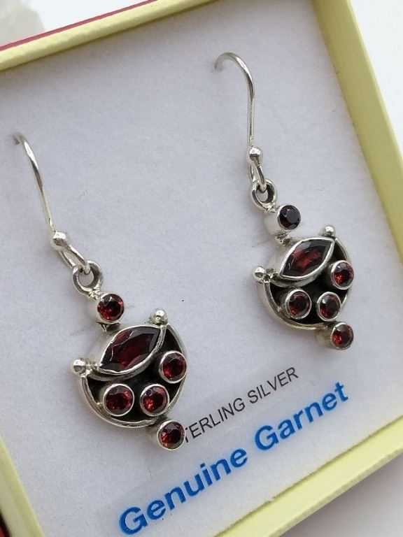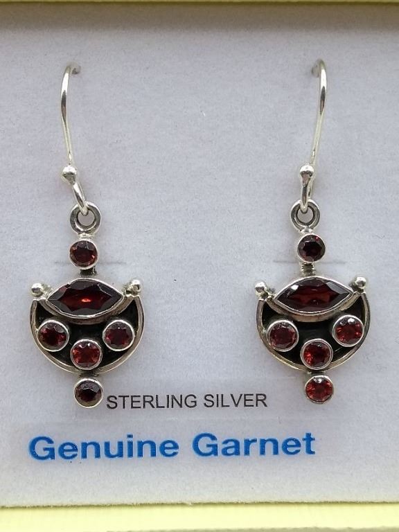 STERLING SILVER VINTAGE STYLE GARNET EARRINGS RETAIL $300