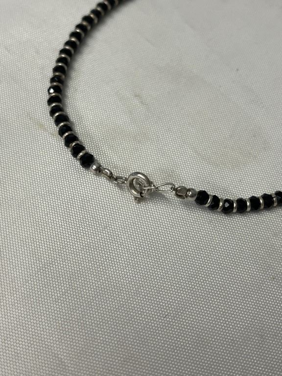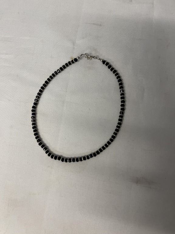 STERLING SILVER W/ BLACK FRECH JET CRYSTAL BEADS LARGE BRACELET OR ANKLET
