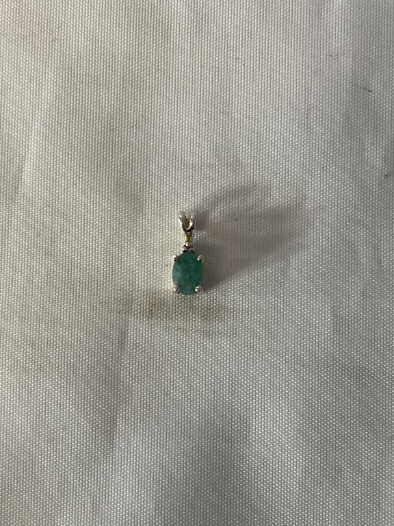 STERLING SILVER W/ COLUMBIAN EMERALD STONE PENDANT