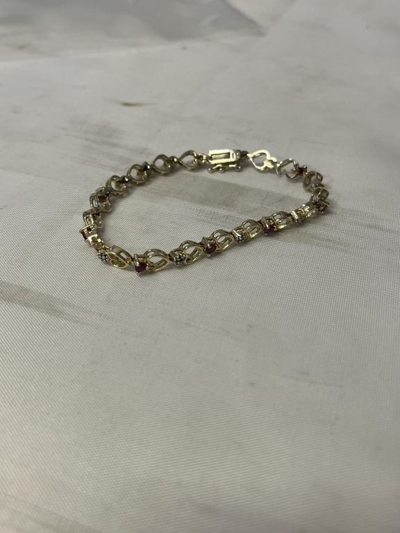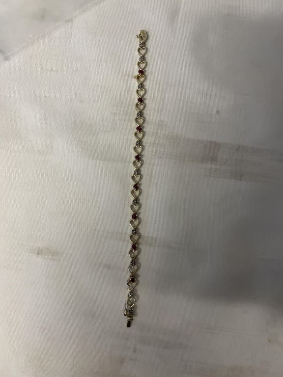 STERLING SILVER W/ GENUINE RUBY STONES TENNIS BRACELET MARKED FAS 925 W/ SAFETY LOCK