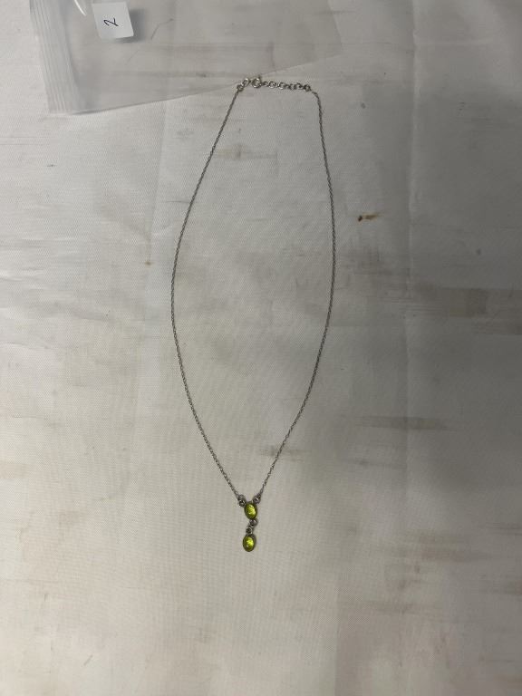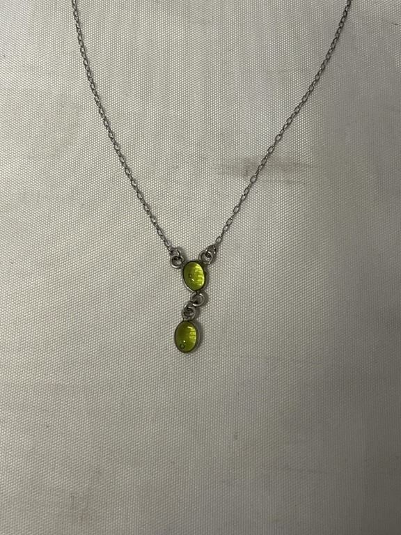 STERLING SILVER W/ GREEN PERIDOT STONES CHOKER NECKLACE MARKED 925