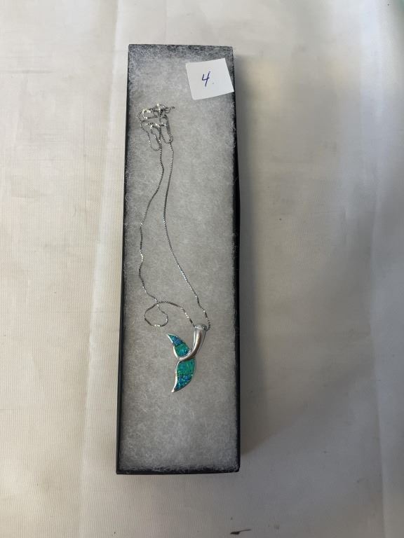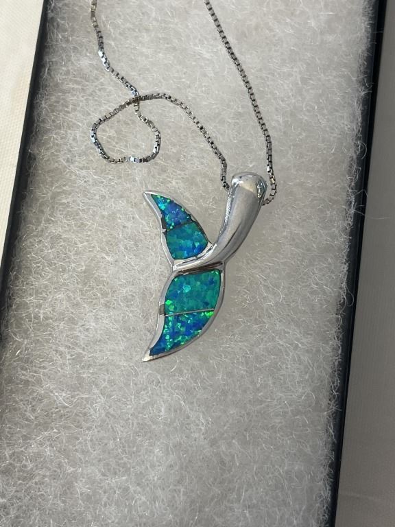 STERLING SILVER WITH OPAL STONE SHARK FIN PENDANT WITH SS CHAIN