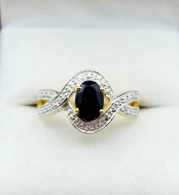 STERLING SILVER YELLOW GOLD TONE PLATED 7.2MM X 5.2MM NATURAL SAPPHIRE (1CT) RING, W/A $535.00, SIZE