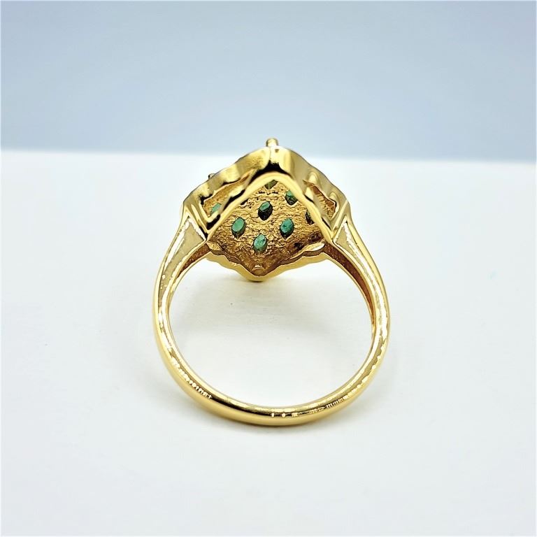 STERLING SILVER YELLOW GOLD TONE PLATED NATURAL EMERALD & WHITE SAPPHIRE RING, 9 EMERALD (0.54CTS),