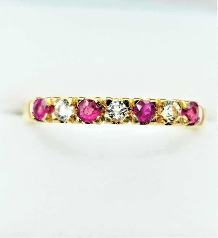 STERLING SILVER YELLOW GOLD TONE PLATED NATURAL ENHANCED RUBY (0.28CTS) & WHITE SAPPHIRE RING, W/A $445.00, SIZE 9.25, RUBY IS THE BIRTHSTONE FOR JULY.