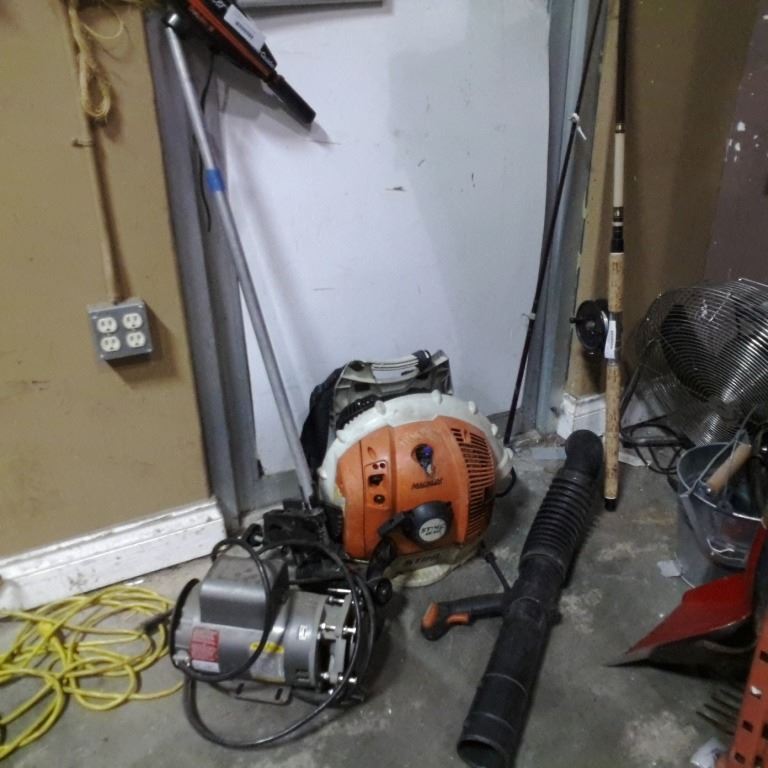 STIHL BACKPACK BLOWER, SILENCER ELECTRIC BOAT MOTOR BOTH NEED WORK AND BALDOR ELECTRIC MOTOR