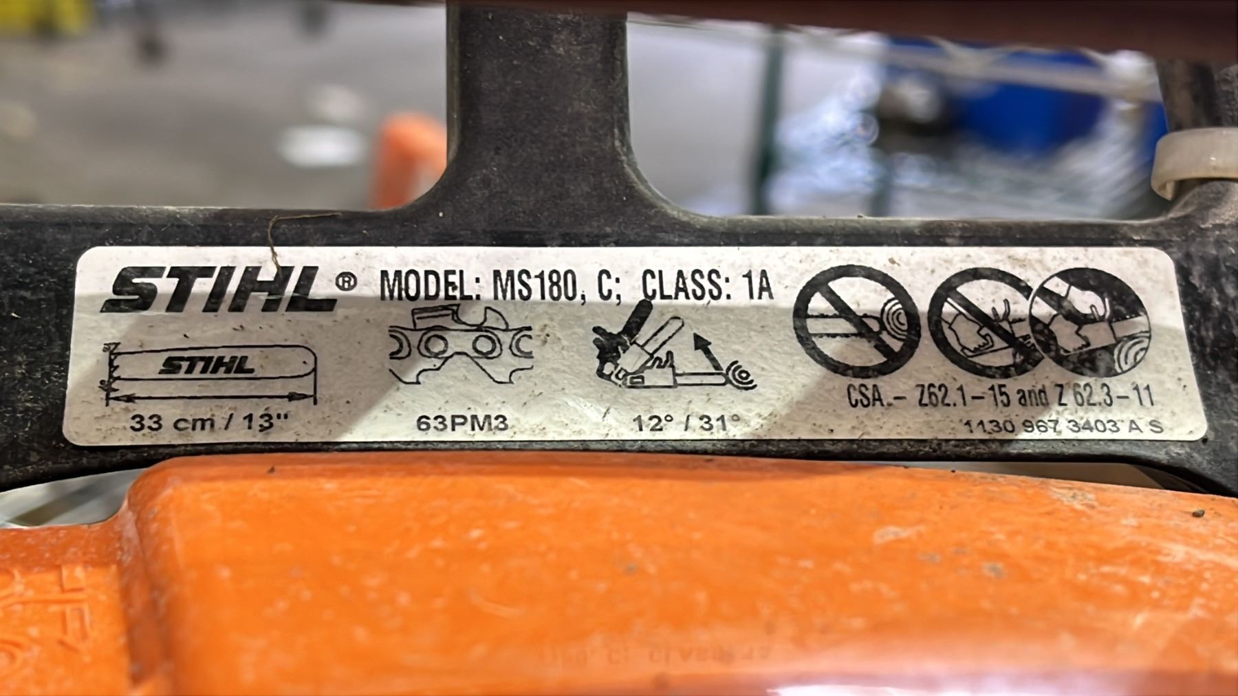 STIHL MS180C GAS POWERED CHAIN SAW WITH BLADE COVER