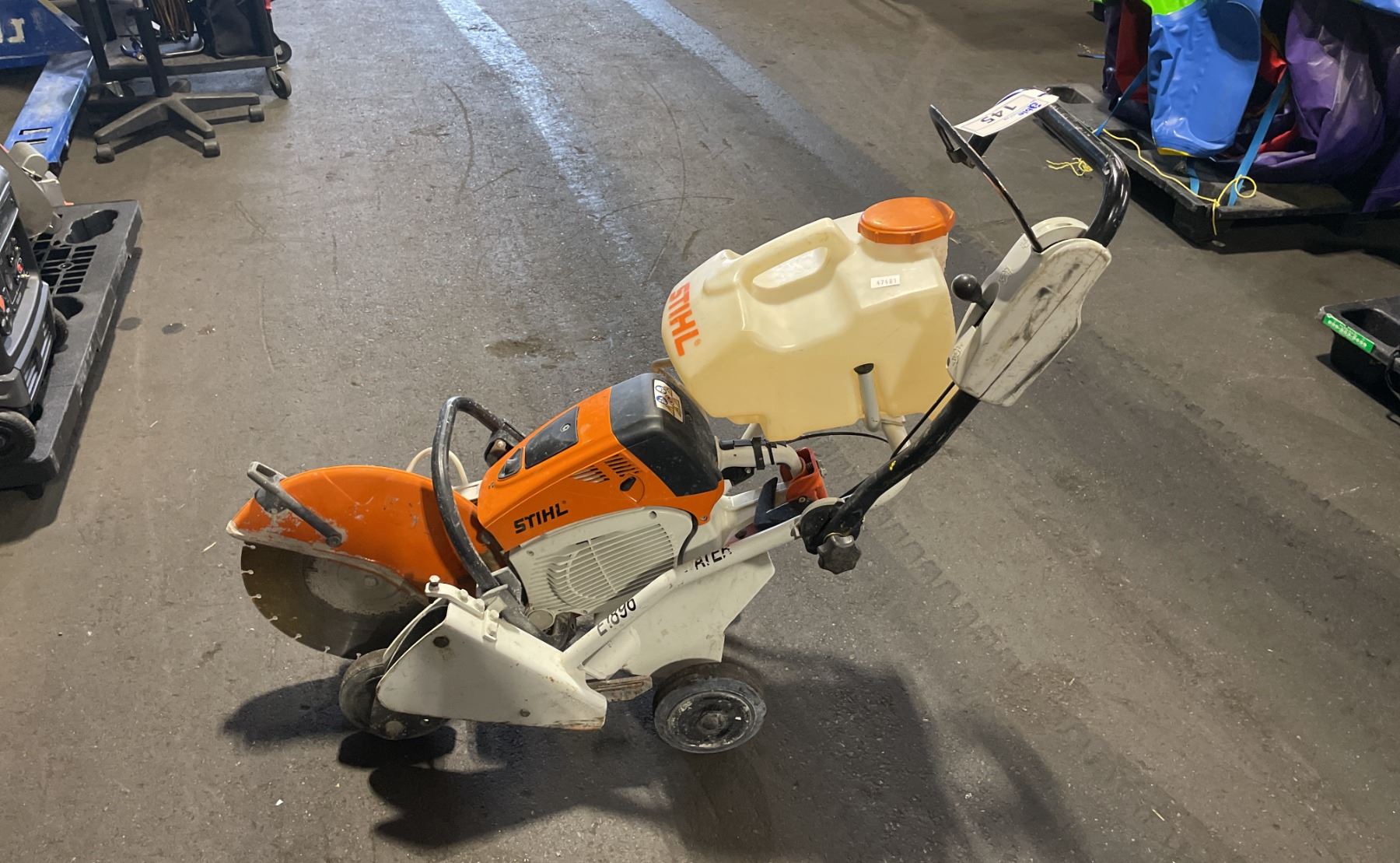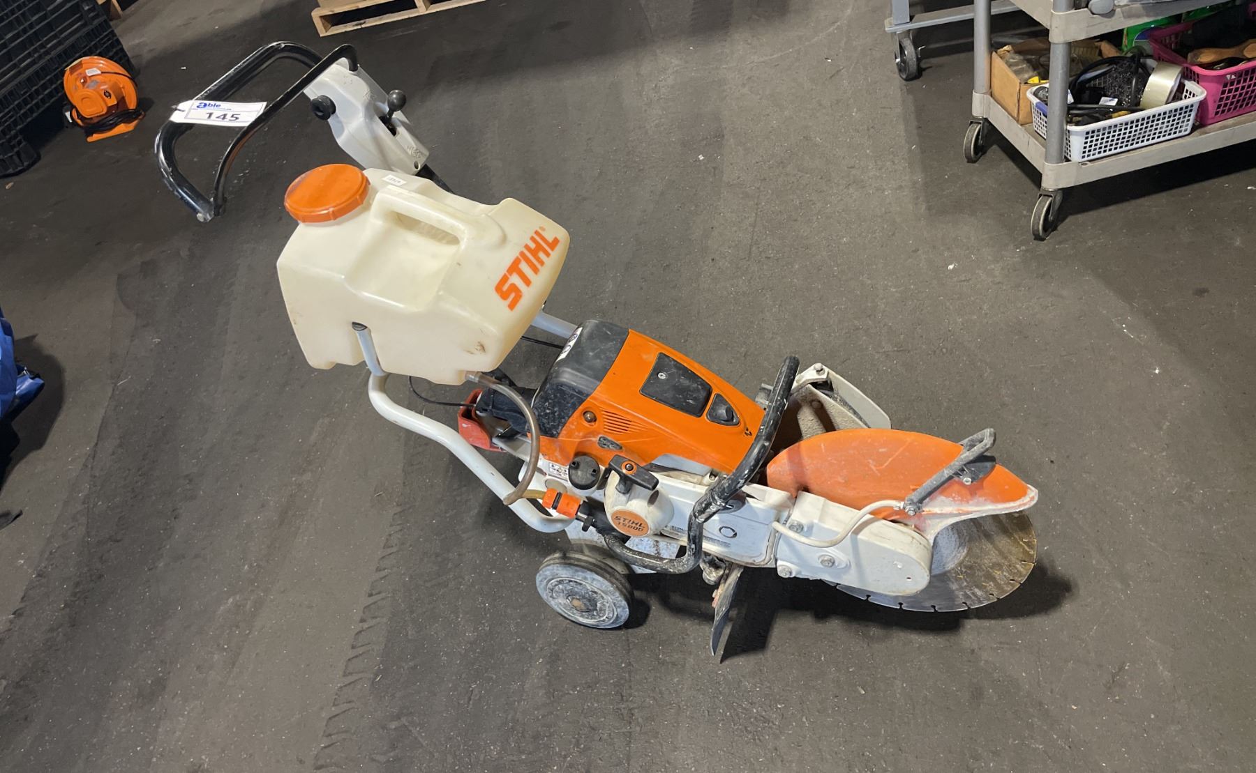 STIHL TS 800 GAS POWERED COMMERCIAL METAL CUTTING PORTABLE CHOP SAW ON STIHL MOBILE WET SAW STAND