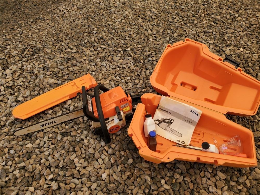 STIHL chain saw - Most Items have not been tested - Viewing Recommended- 17% Buyer Fee. Payment Processed through Live Auction World ( Visa or Master Card ) pick up Saturday, or Tuesday