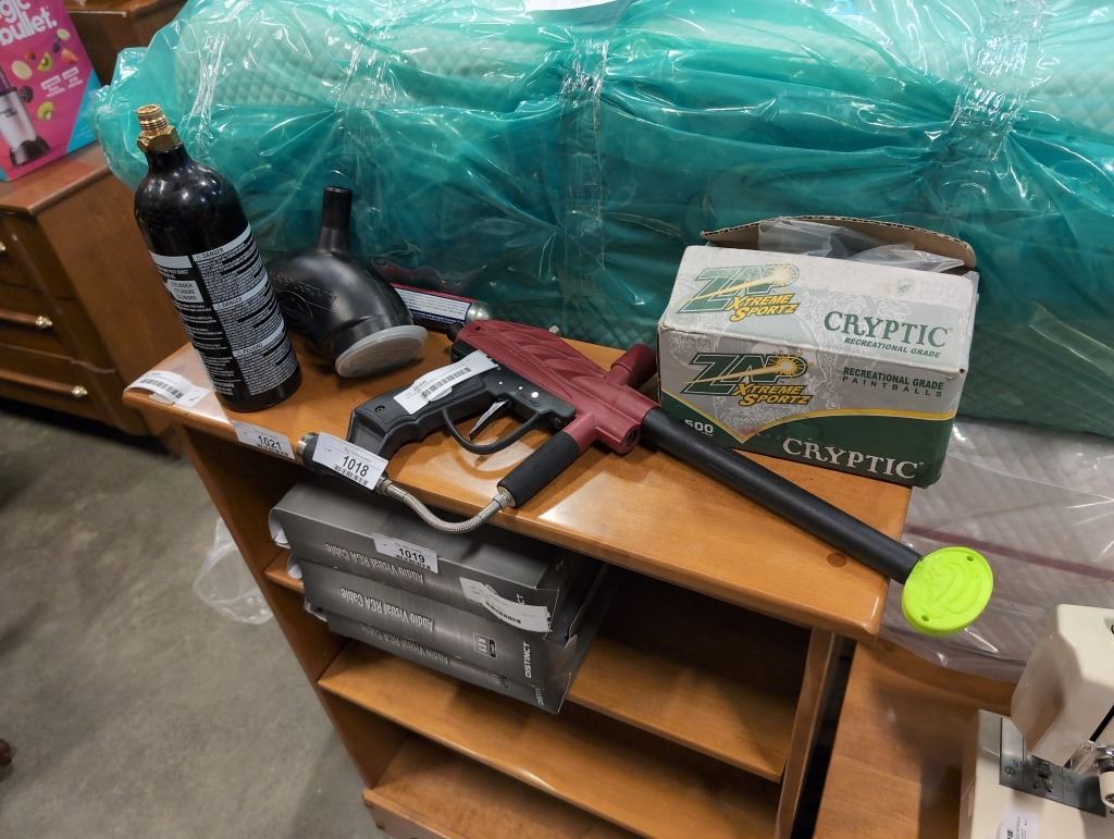 STRIKIER PAINTBALL GUN WITH 2 CO2 TANKS, HOPPER AND PAINTBALLS