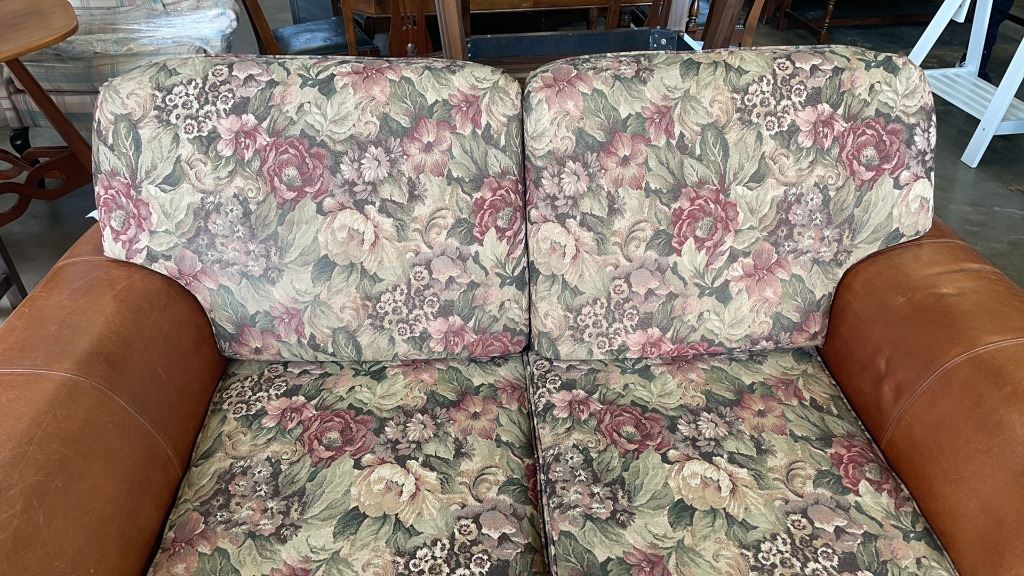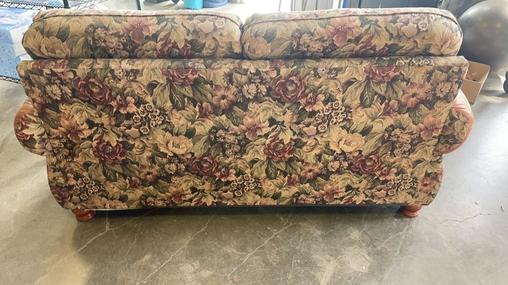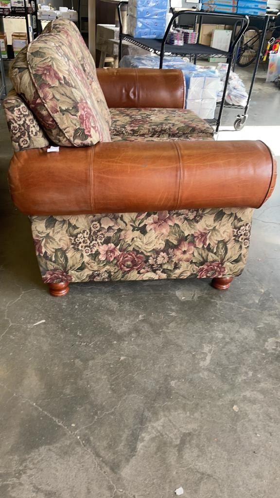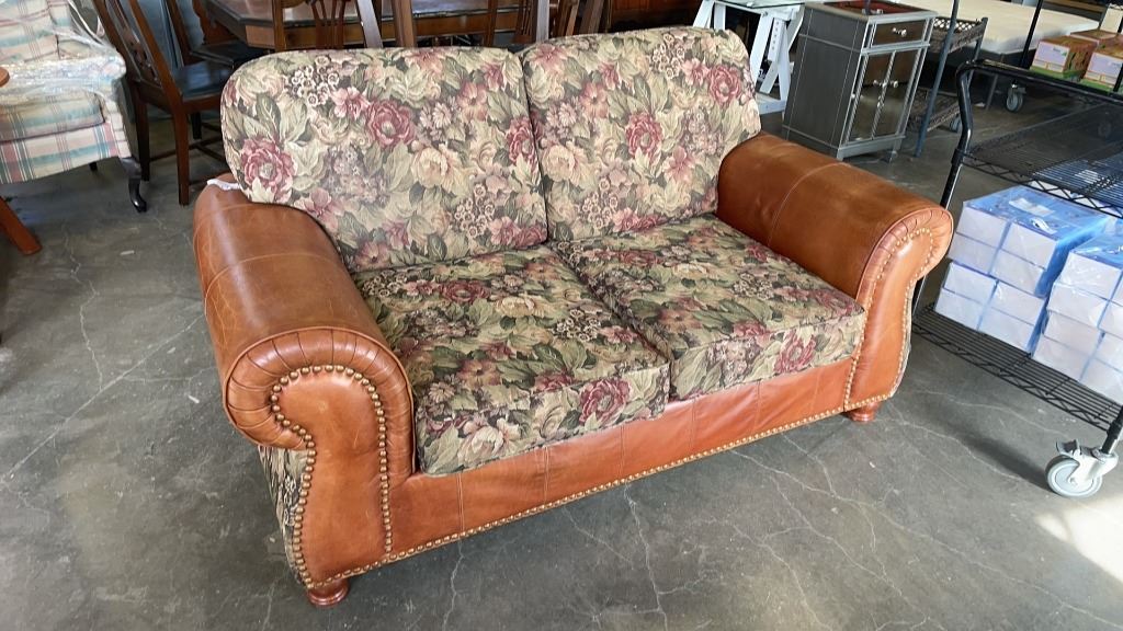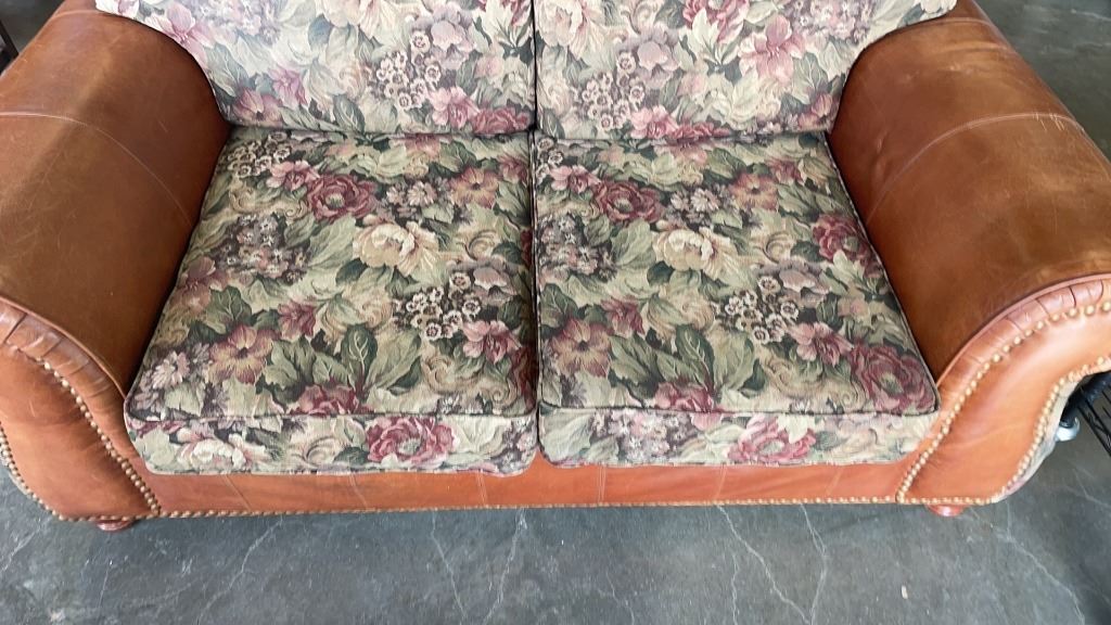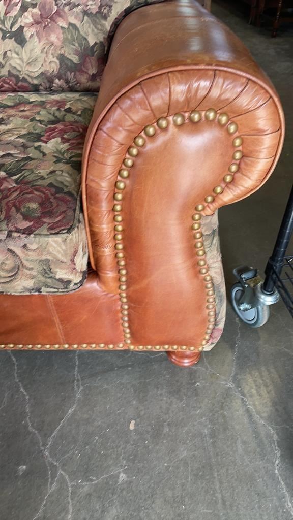 STUDDED LEATHER AND FABRIC SOFA