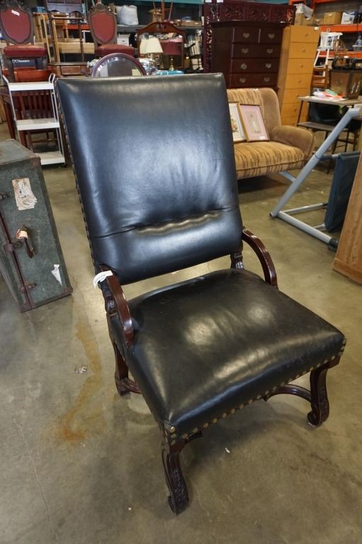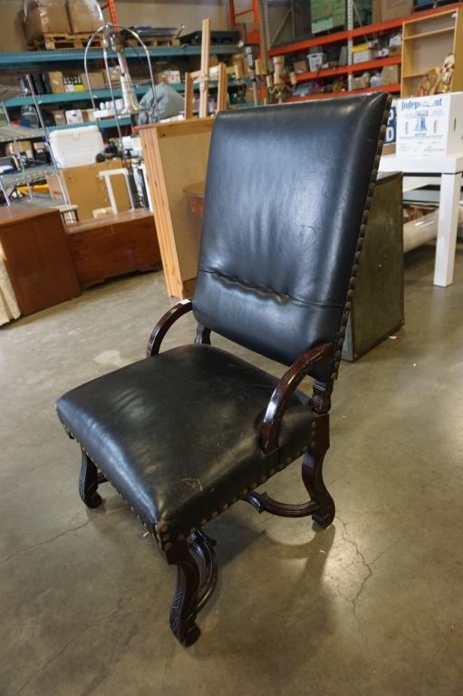 STUDDED LEATHER WOOD FRAMED CHAIR