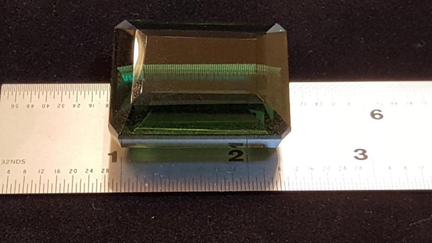 STUNNING 199.90 CT CERTIFIED AAA QUALITY GREEN AMETHYST. A FINE EMERALD CUT MEASURING 35.88 x 26.74 x 17.16 mm. DISPLAYING A VIVID SATURATION AND CLARITY. NEAR FLAWLESS. HEATED TO ENHANCE COLOR. PLEASE SEE CERTIFICATION FOR FURTHER DETAILS.