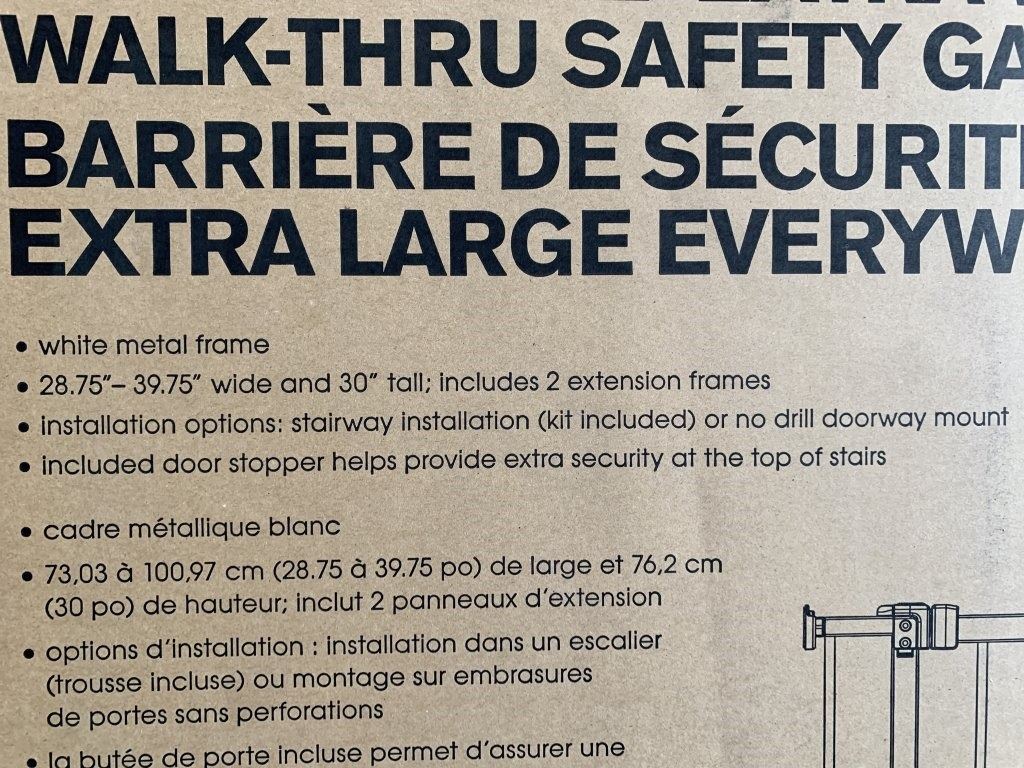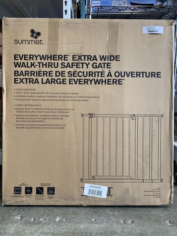 SUMMER INFANT EXTRA WIDE WALK-THRU PRESSURE/ HARDWARE MOUNTED SAFETY GATE, RETAIL $89
