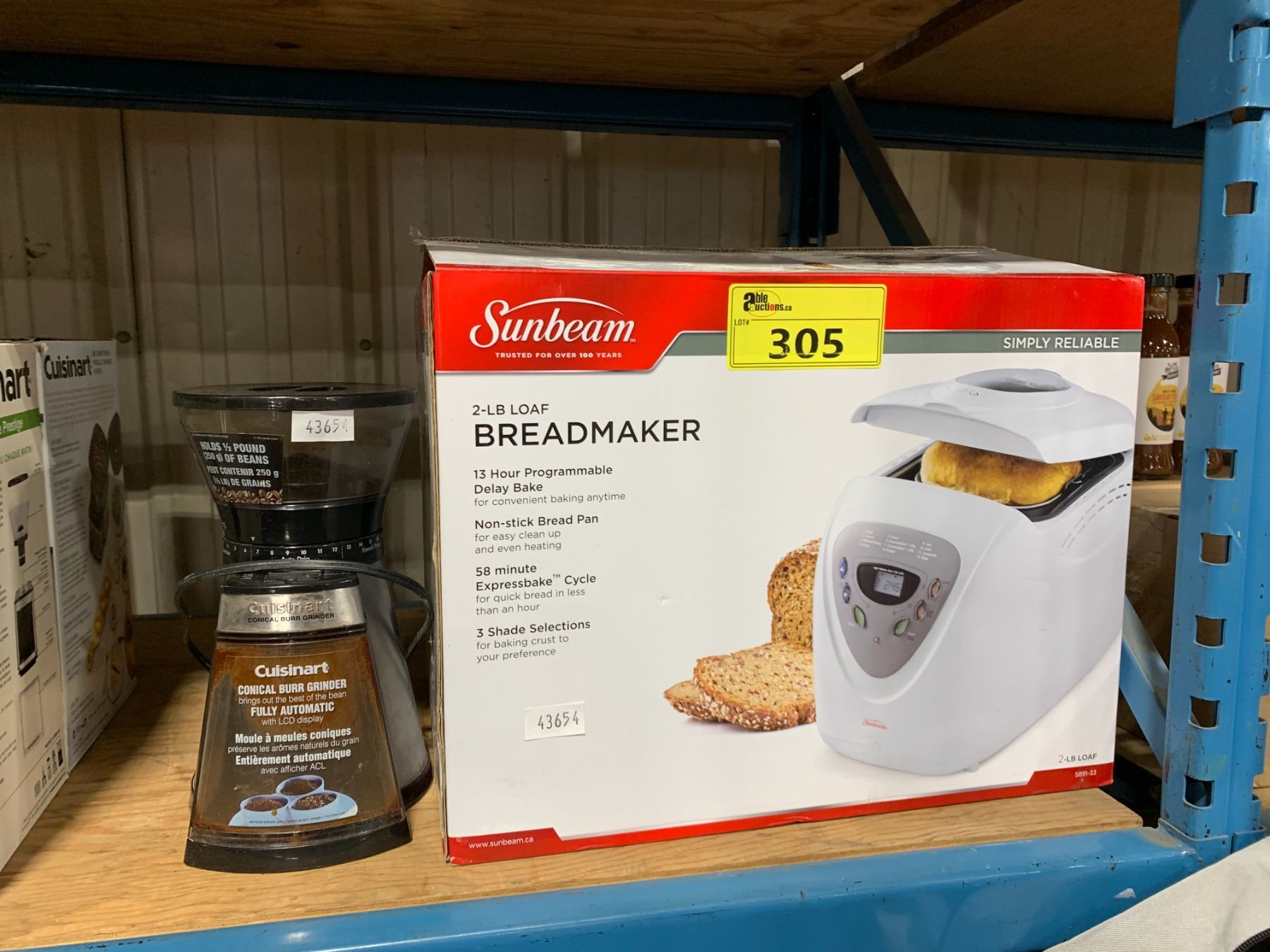 SUNBEAM 2-LB LOAF BREAD MAKER & CUISINART CONICAL BURR GRINDER