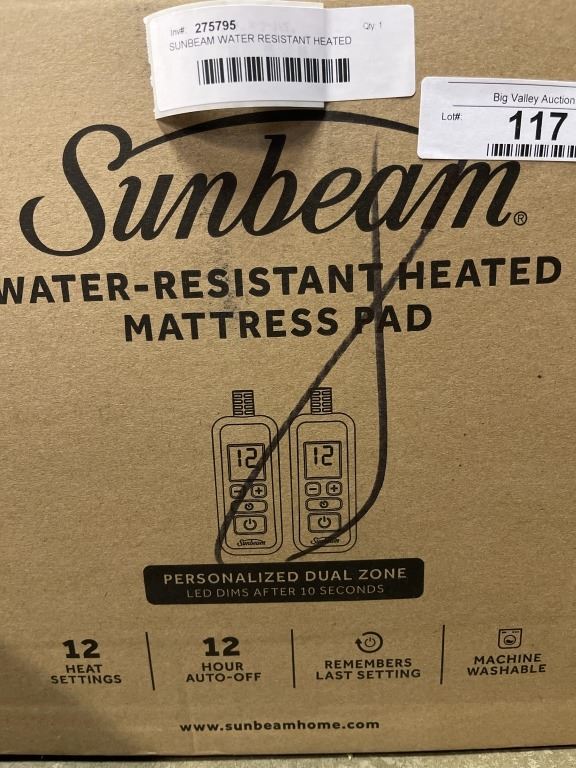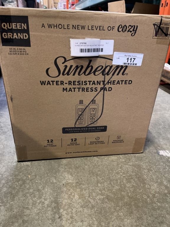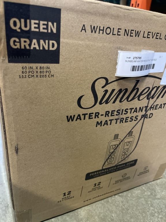 SUNBEAM WATER RESISTANT HEATED MATTRESS PAD, QUEENSIZE
