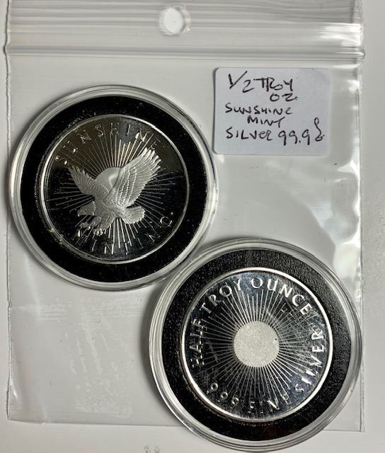 SUNSHINE MINT 1/2 TROY OZ. SILVER (99.9%) ROUND - TAX EXEMPT