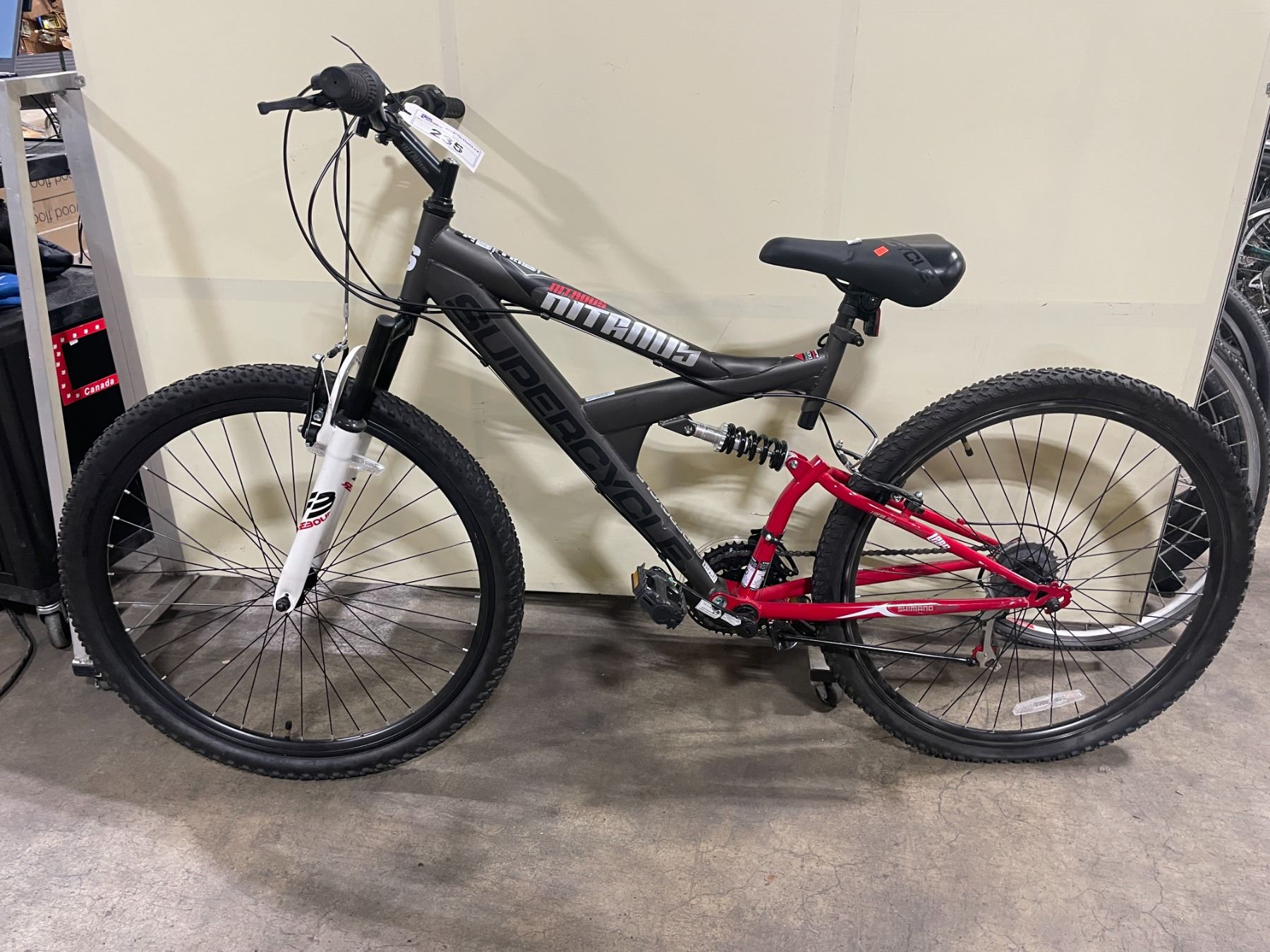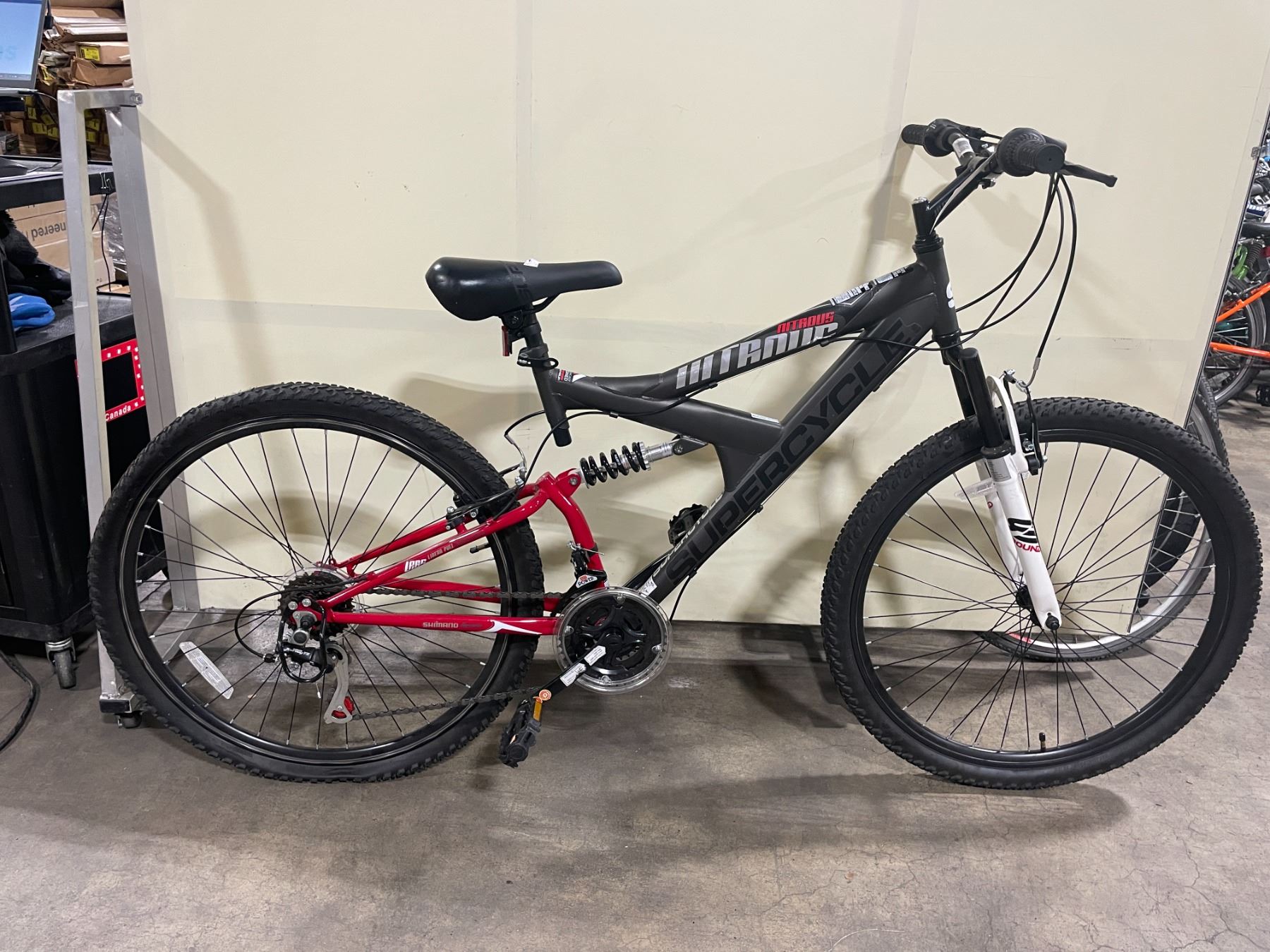 SUPERCYCLE NITROUS MATTE GREY 21 SPEED FULL SUSPENSION MOUNTAIN BIKE *HOLE IN REAR TIRE*