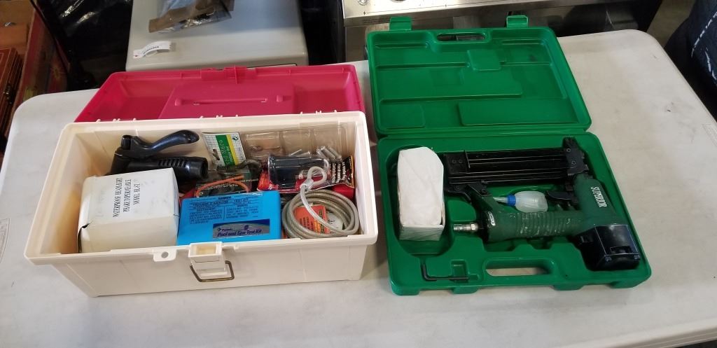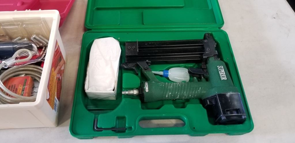 SUPERIOR AIR NAILER AND TOOLBOX WITH CONTENTS SOME NEW