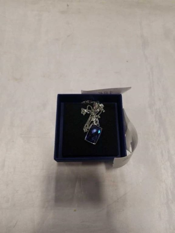 SWAROVSKI CRYSTAL NECKLACE WITH PURPLE FACETED STONE PENDENT