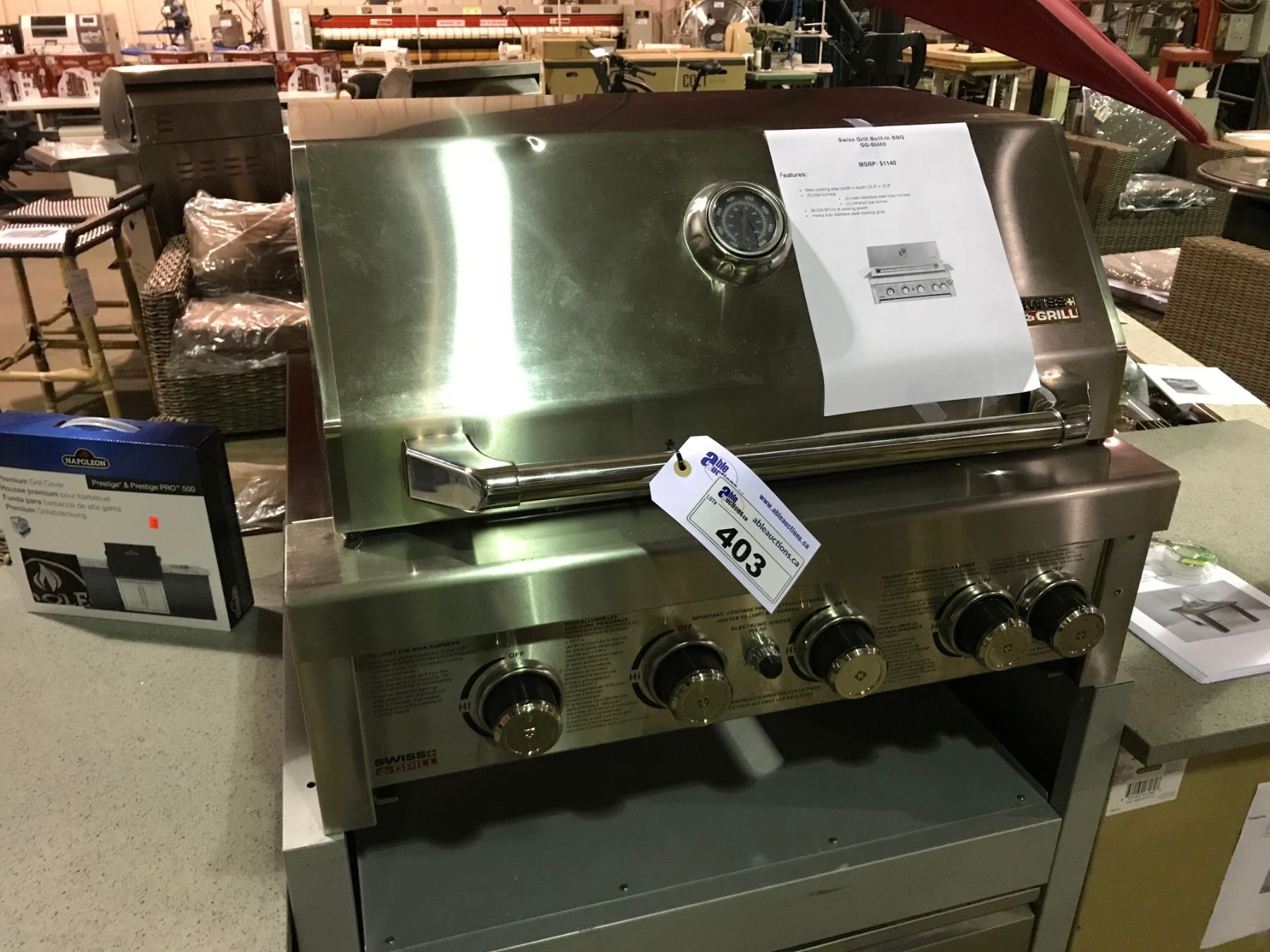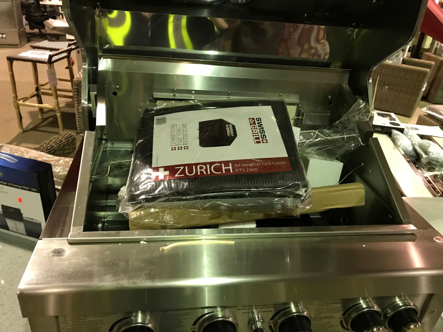 SWISS GRILL GG-B1460 STAINLESS STEEL 56'000 BTU 5 BURNER NATURAL GAS BUILT-IN BBQ WITH SWISS GRILL COVER, DIMENSIONS 23"D X 31 1/2"W X 22"H MSRP $1,140