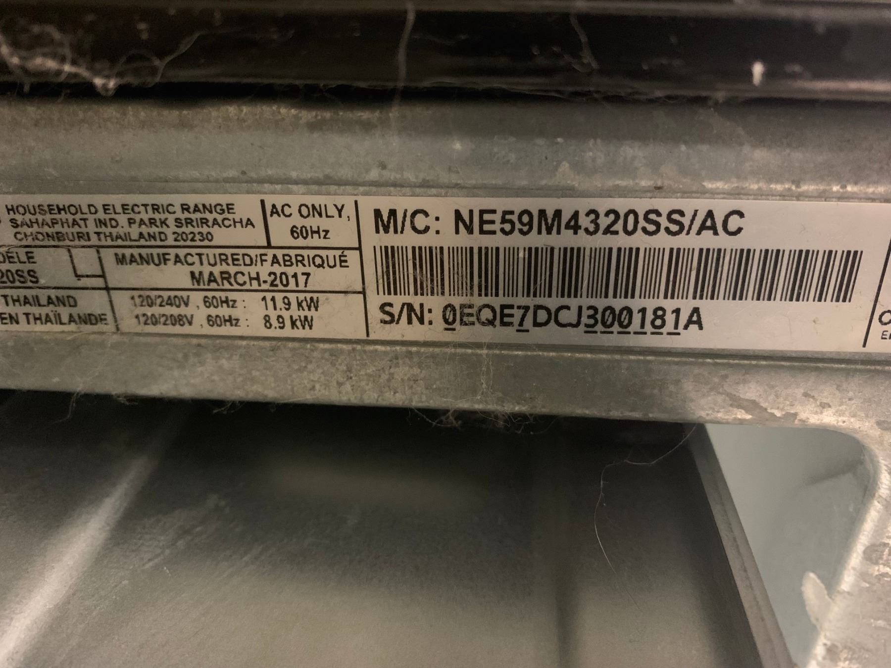 Samsung 30" convection range, used and works fine, model NE59M4320SS