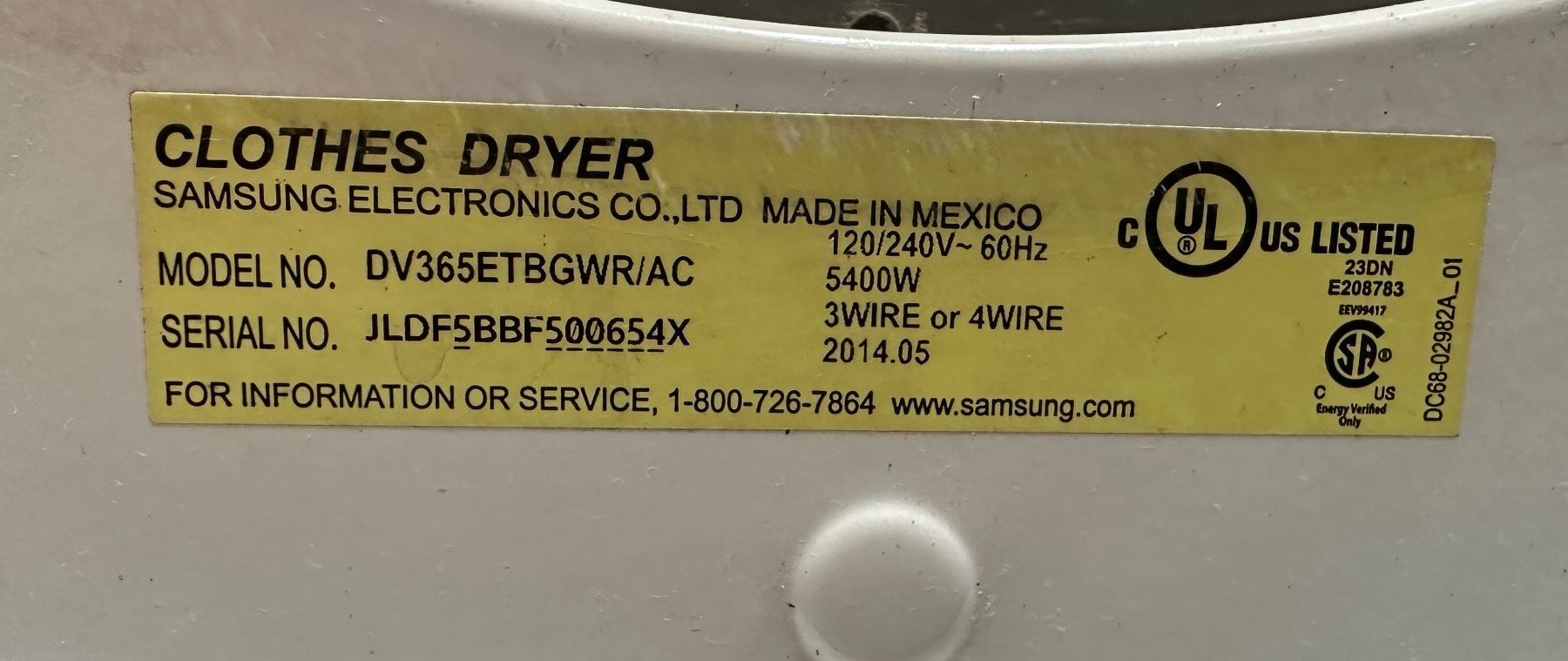 Samsung - Front load Dryer - model: DV365ETBGWR/AC