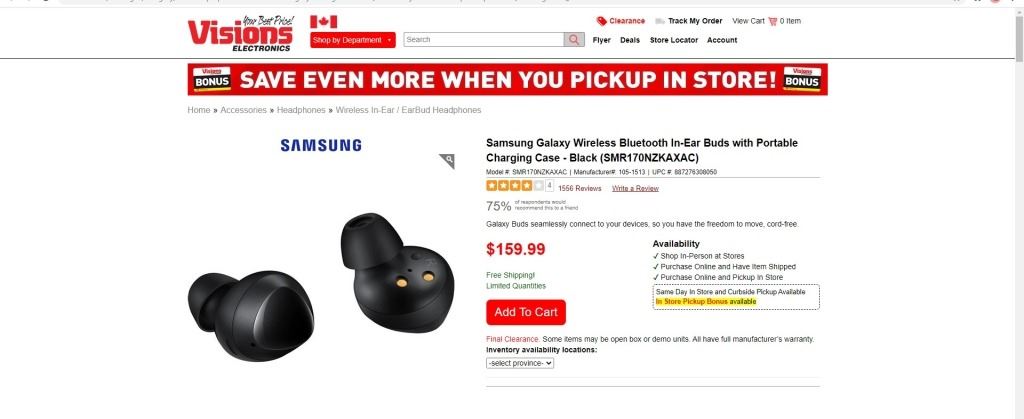 Samsung Galaxy Wireless Bluetooth In-Ear Buds with Portable Charging Case - Black Tested and Working Retail $160