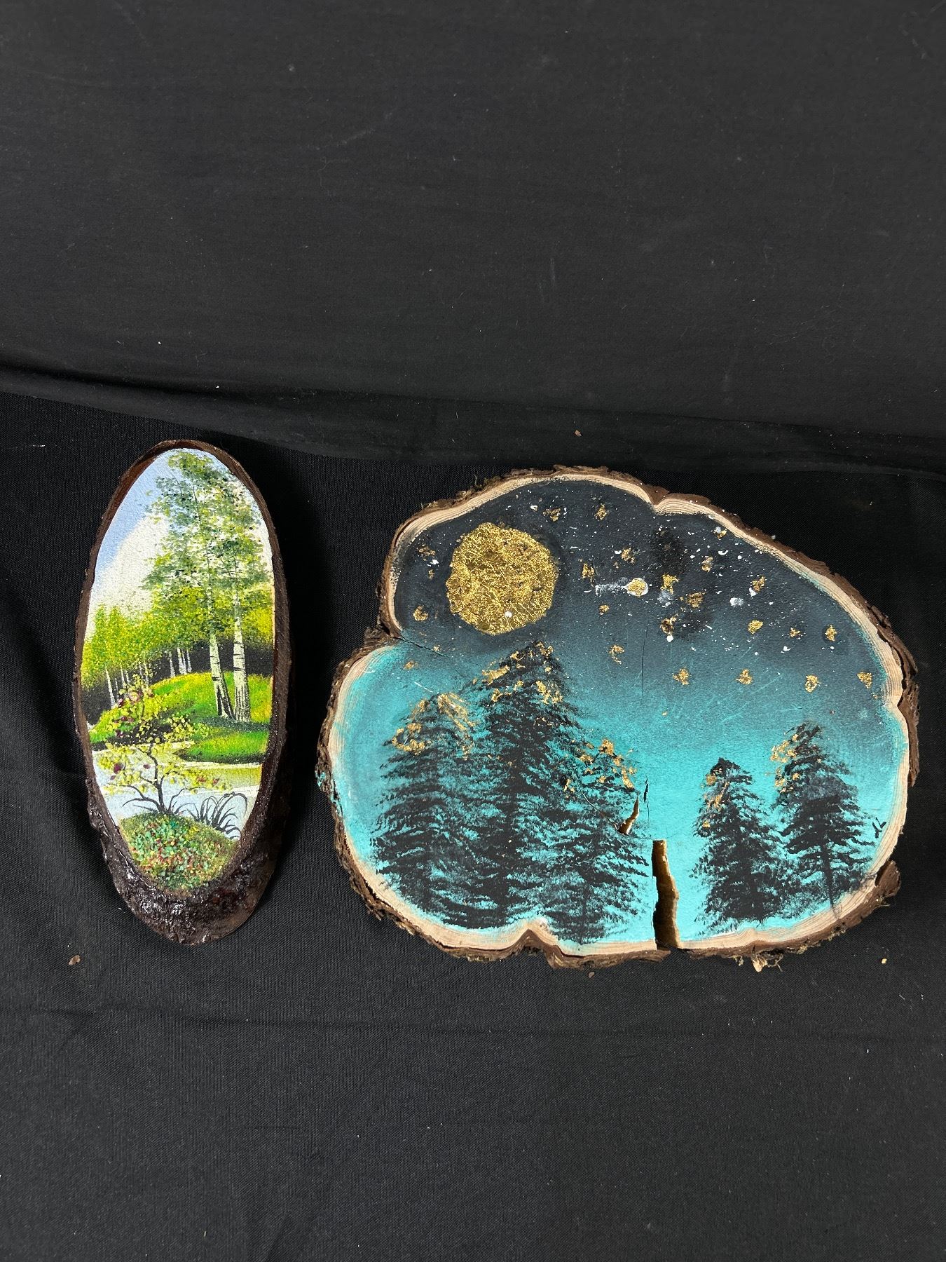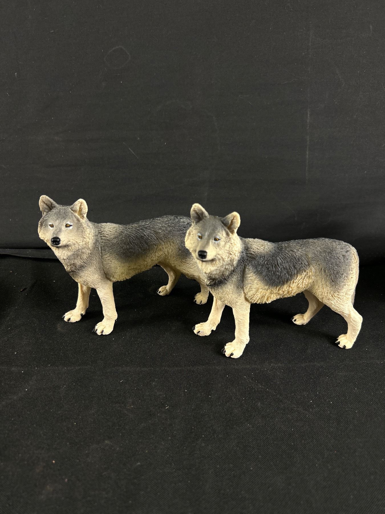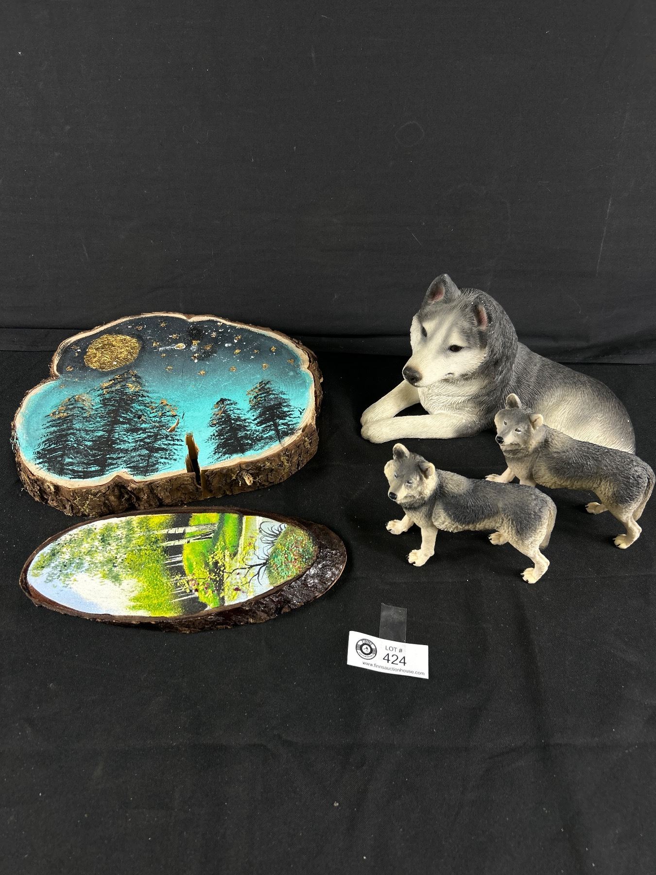 Sandicast 9" L Wolf Figurine w/ Plastic Wolves & 2 Painted 9" & 10" Wood Slices