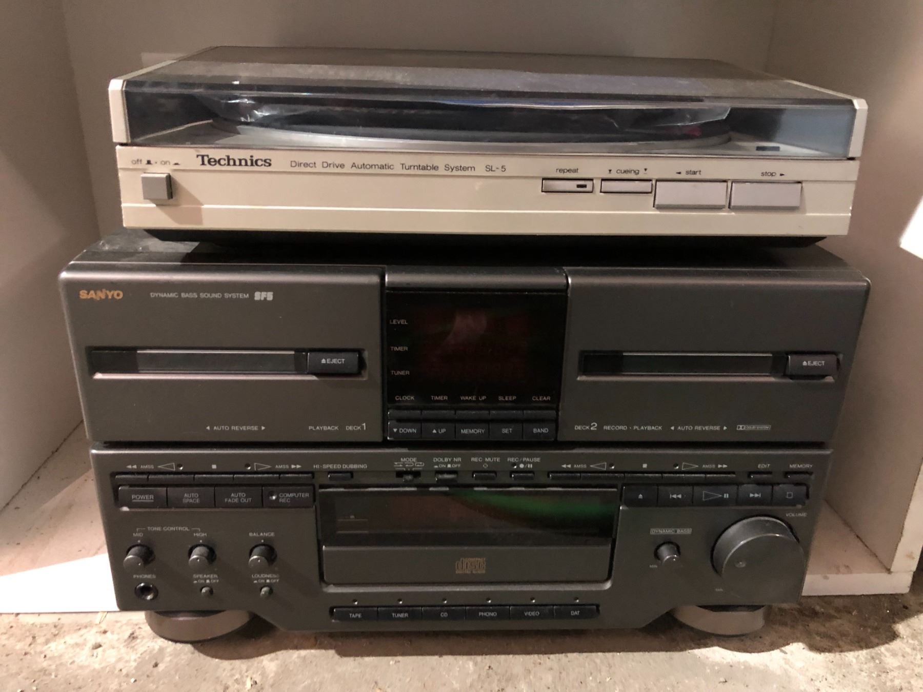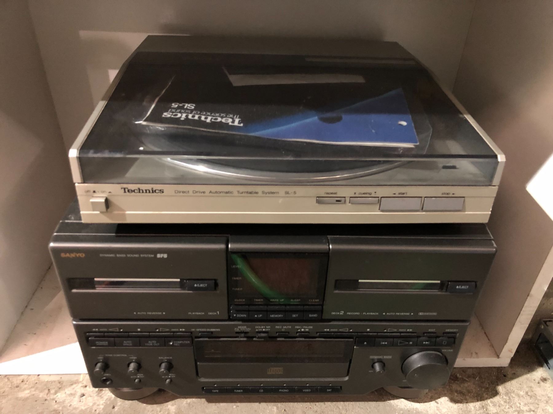 Sanyo bookshelf stereo & vintage Technics turn table