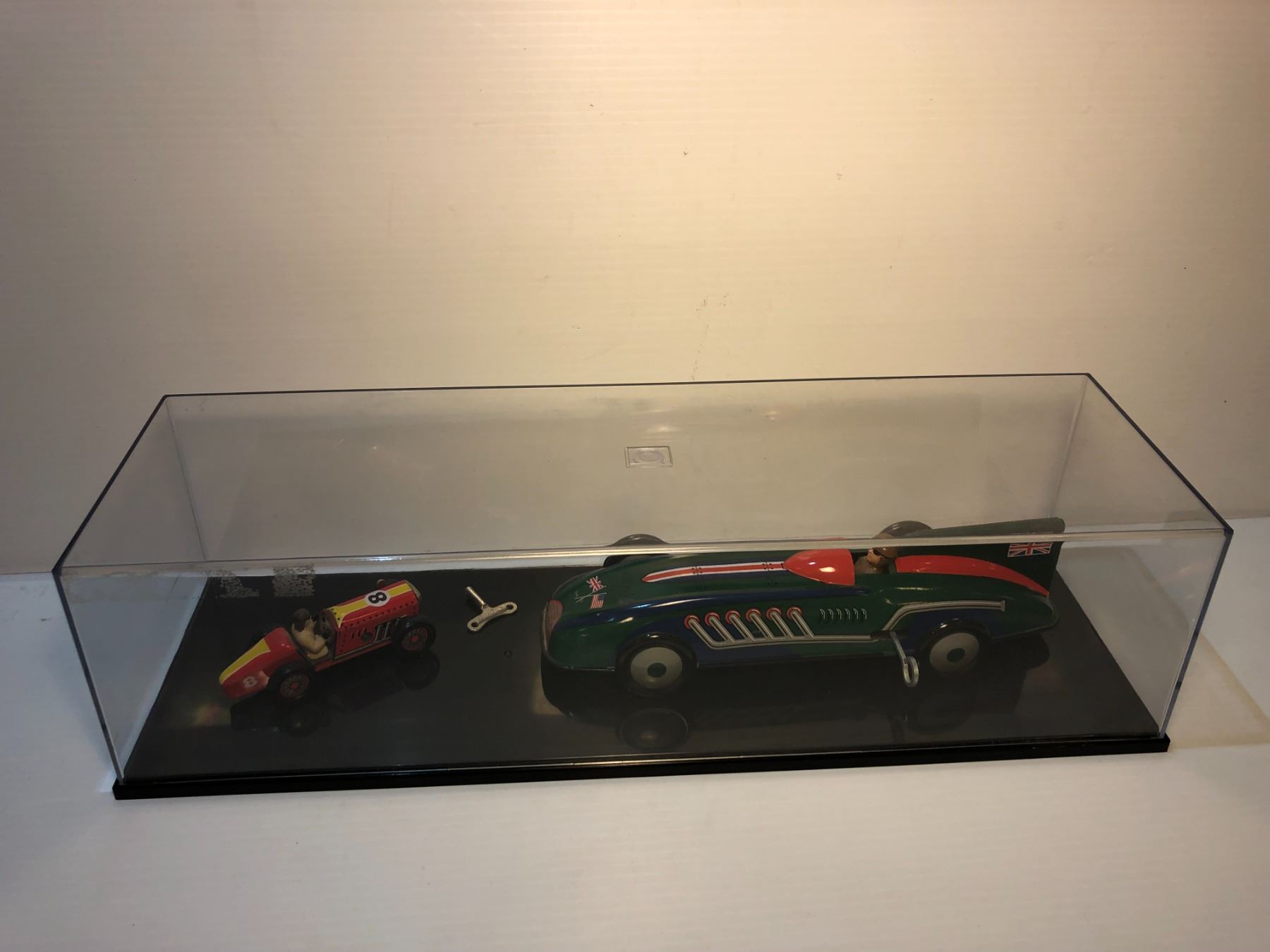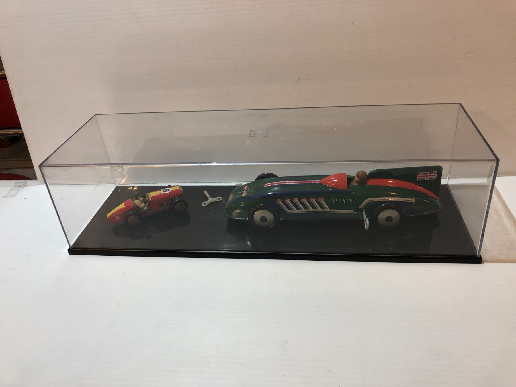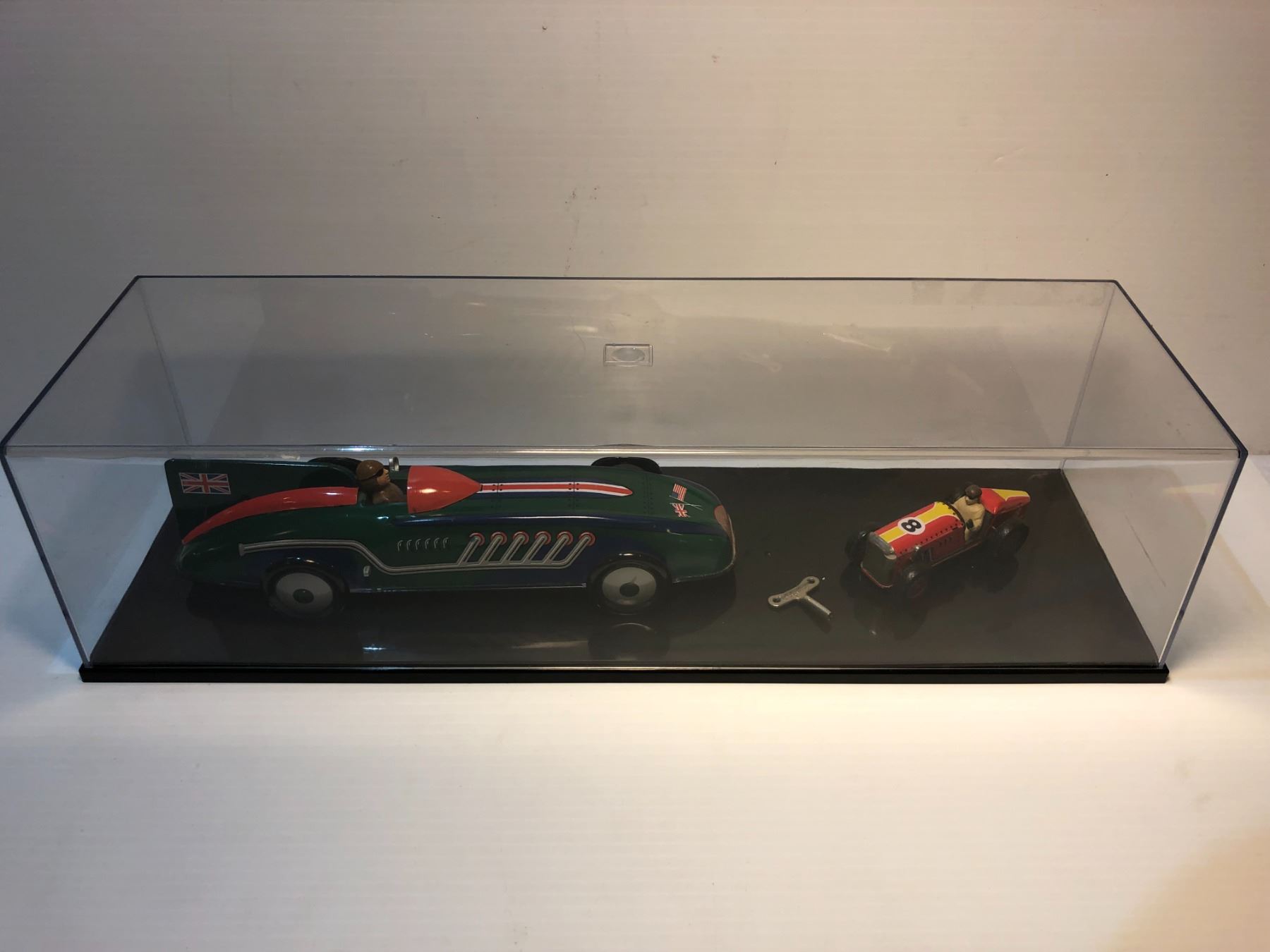 Schylling nostalgic tin toy lithogram wind-up toy car set - 2pc set w/ key in display case