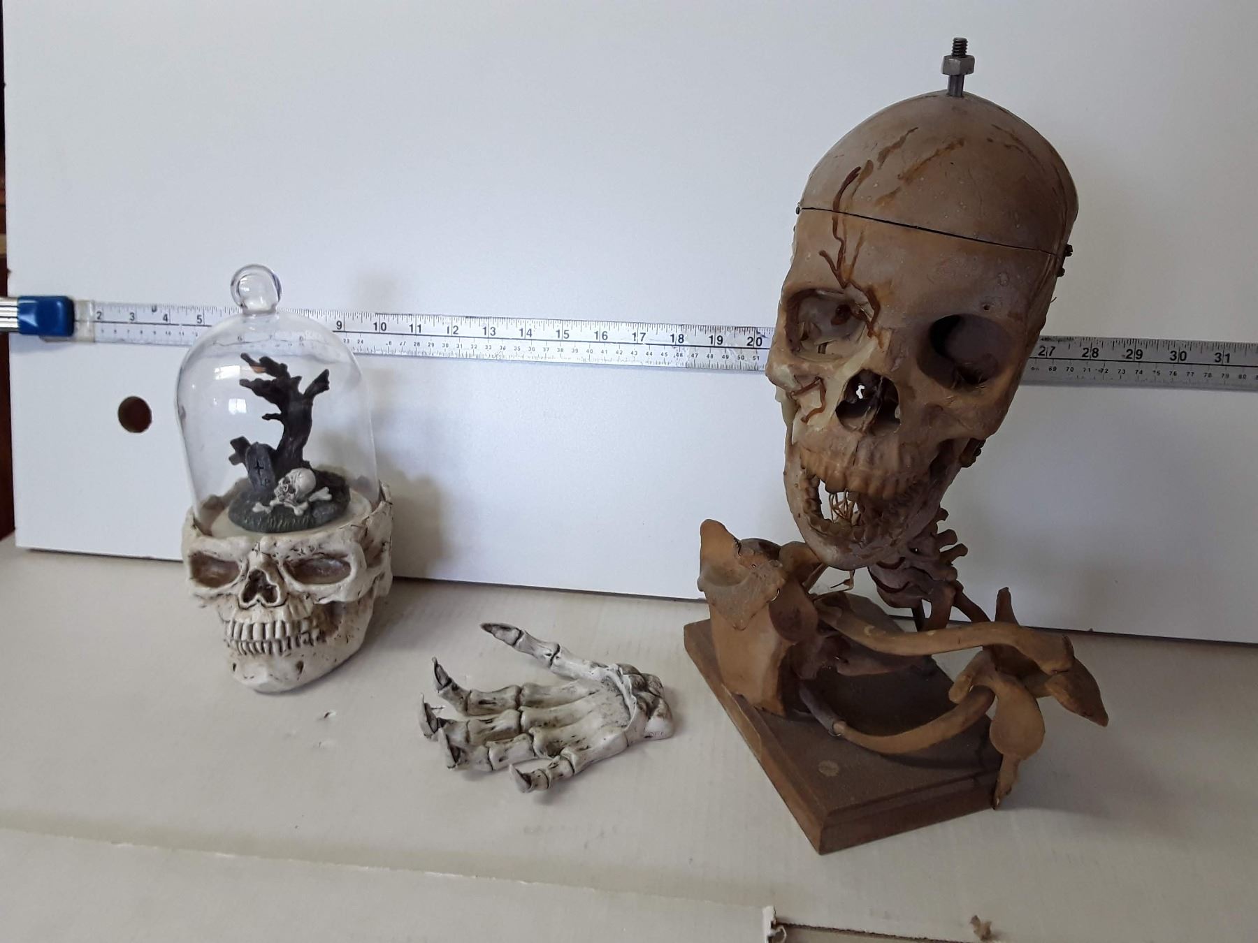 Scull with Graveyard - Skeleton Hand - Skull on Spine Base -- 17% Buyer Fee. Payment Processed through Live Auction World ( Visa or Master Card ) pick up Saturday, or Tuesday