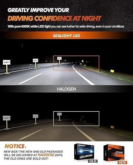 - sealight h13/9008 led headlights conversion kit, super bright dual beam led bulbs, 6000k eye-protection white, quick installation halogen replacement bulbs, pack of 2
