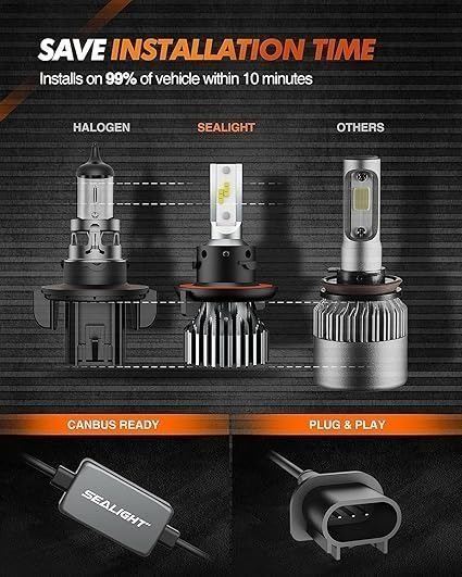 - sealight h13/9008 led headlights conversion kit, super bright dual beam led bulbs, 6000k eye-protection white, quick installation halogen replacement bulbs, pack of 2