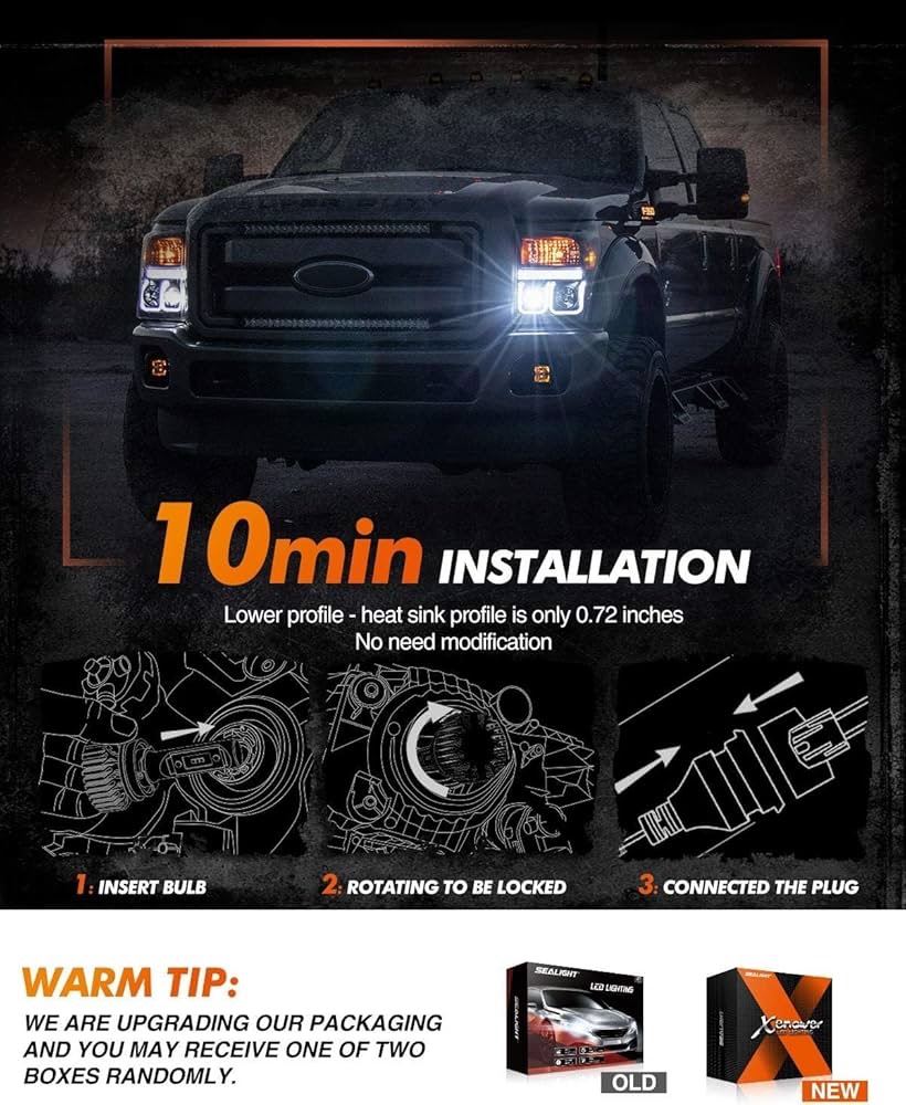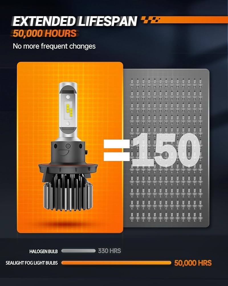 Sealight 2-Pack LED Super-Bright Headlights (H13/9008) 6000K LED Bulbs - New Sealed