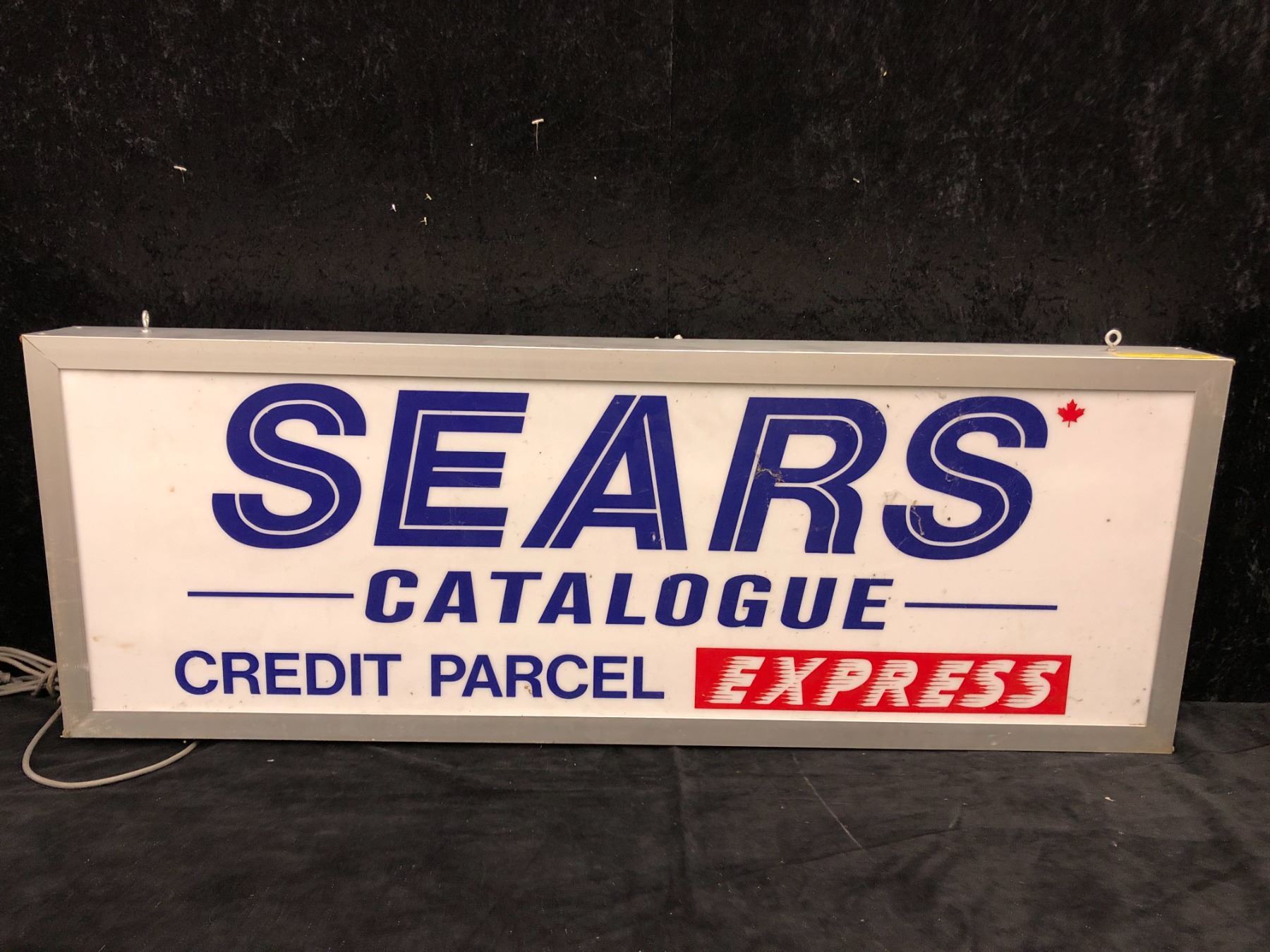 Sears Catalogue Credit Parcel Express lighted advertisement sign 50in x 18in