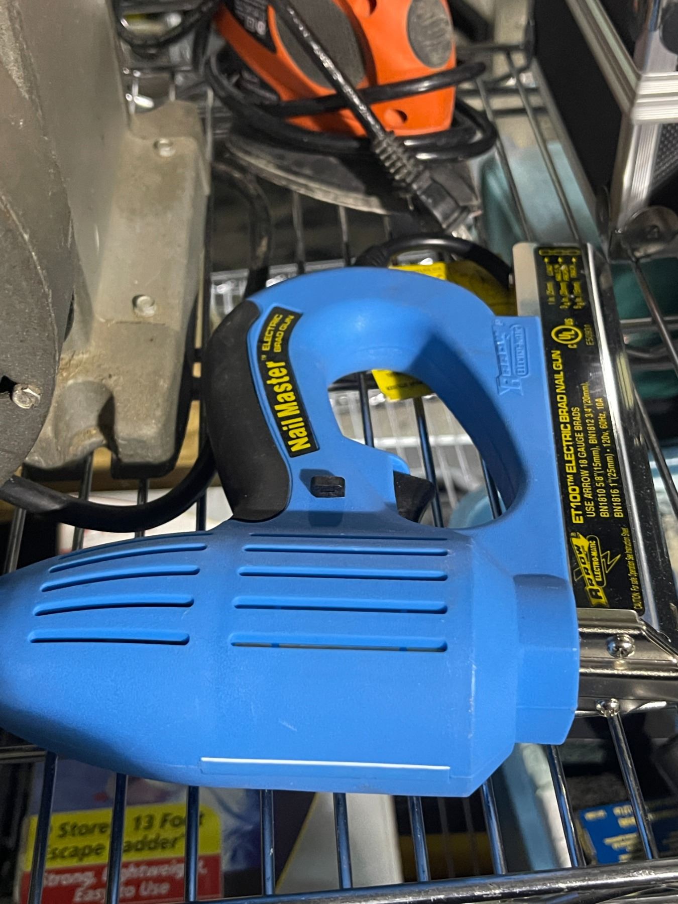 Sears Craftsman 1/3 HP Bench Grinder (397 21126), NailMaster Brad Nail Gun (ET100M), and Black & Decker Sander (MS500K)