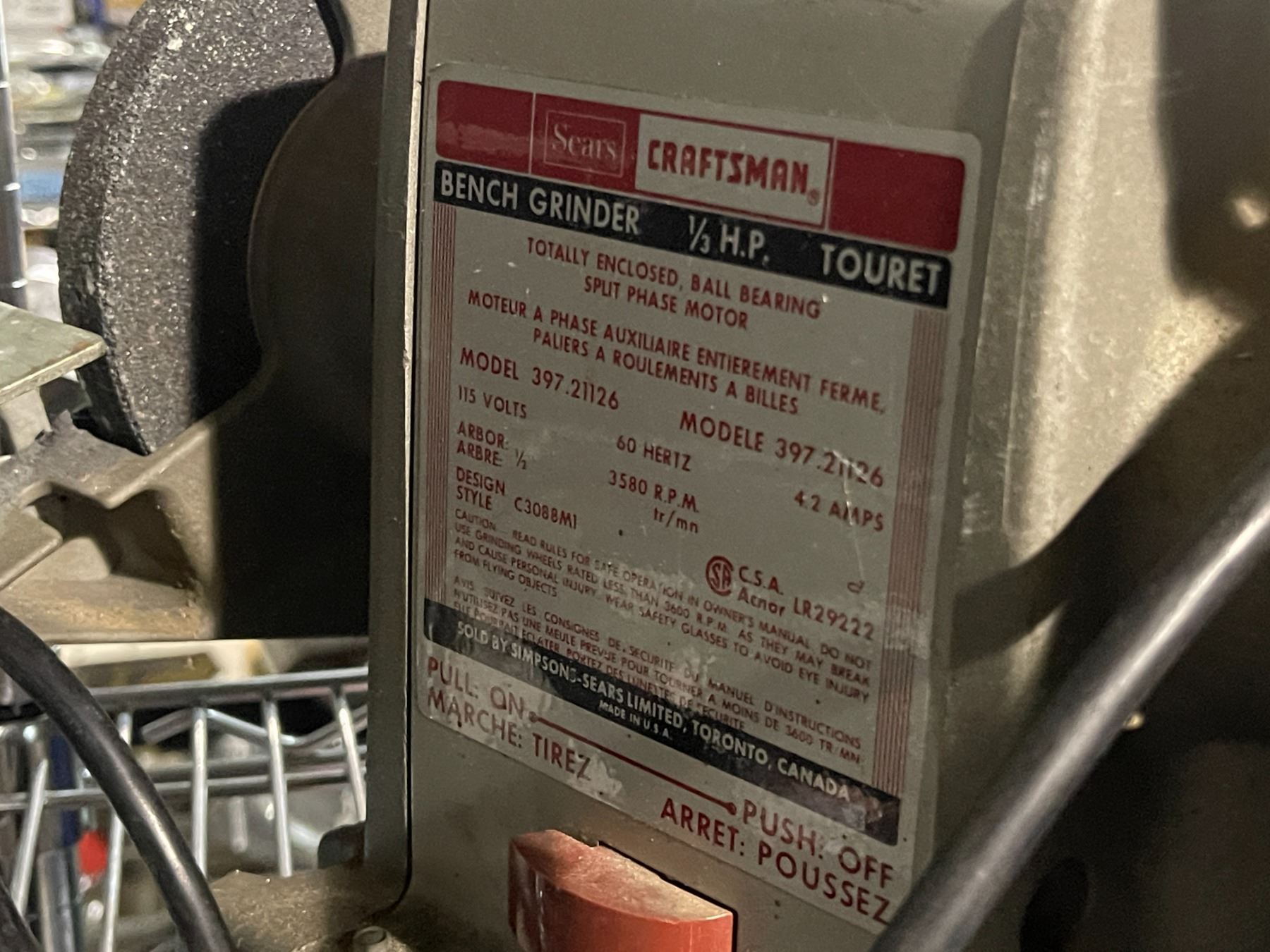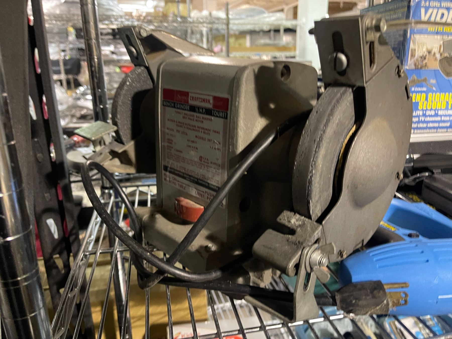 Sears Craftsman 1/3 HP Bench Grinder (397 21126), NailMaster Brad Nail Gun (ET100M), and Black & Dec