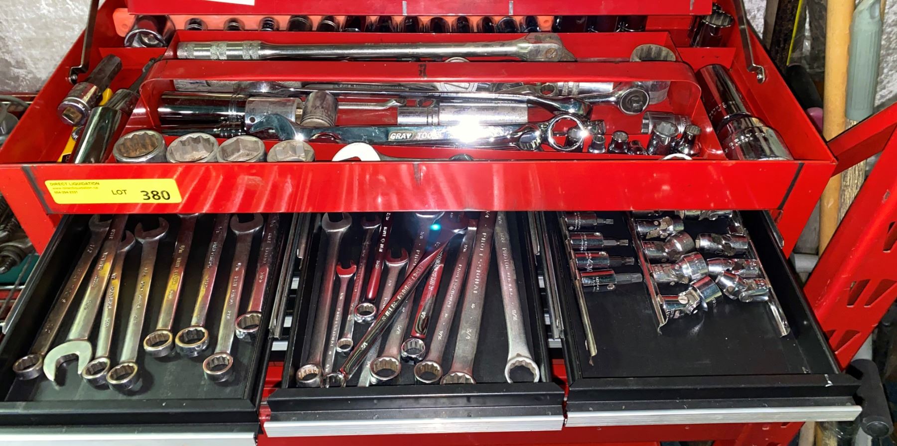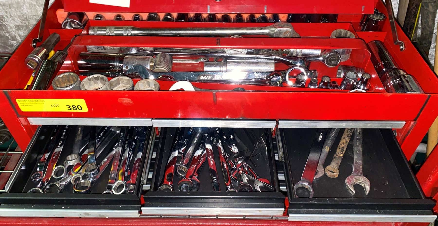 Sears Craftsman red nine drawer tool cabinet w/ assorted tools - mixed batch mostly grey