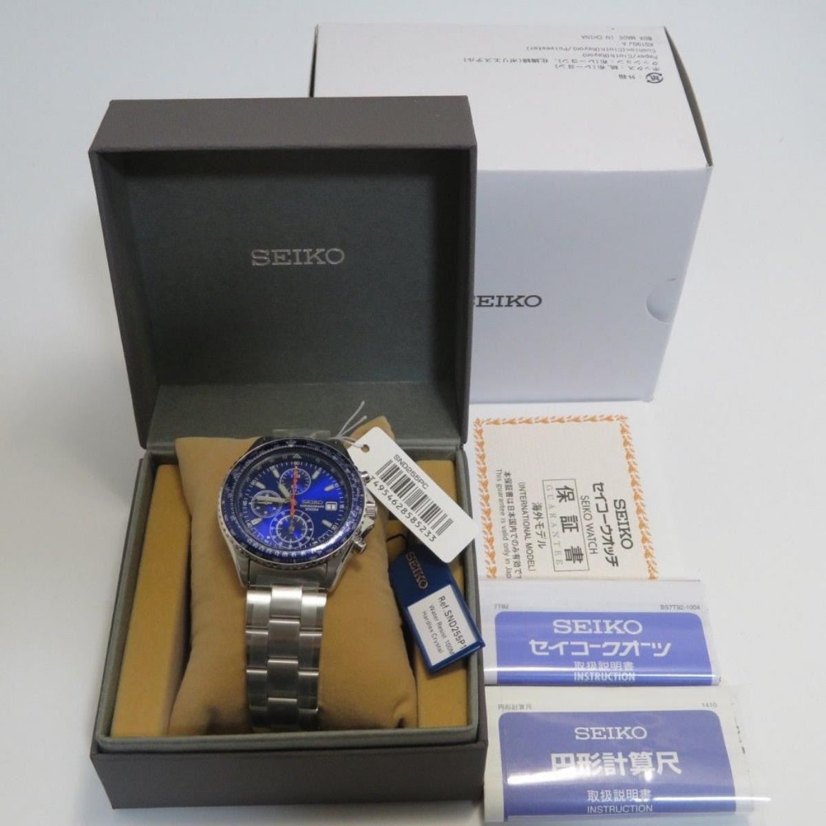 Brand SEIKO;Case shape round face;Windshield Material HARLEX;Display Type Analog Display;Clasp three-fold type clasp;Case material Stainless steel;Case diameter � width 42 mm;Case thickness 10 mm;Band Material � Type Stainless steel;Band length men's;Band width 20 mm;Band color silver;Dial Color Blue;Bezel material Stainless steel;Bezel function Bidirectional rotation calculation scale bezel;Calendar function Date display;Other functions Small second, luminescent index, rotating bezel;Body weight 122 g;Movement Quartz;Water pressure resistance 100 m;