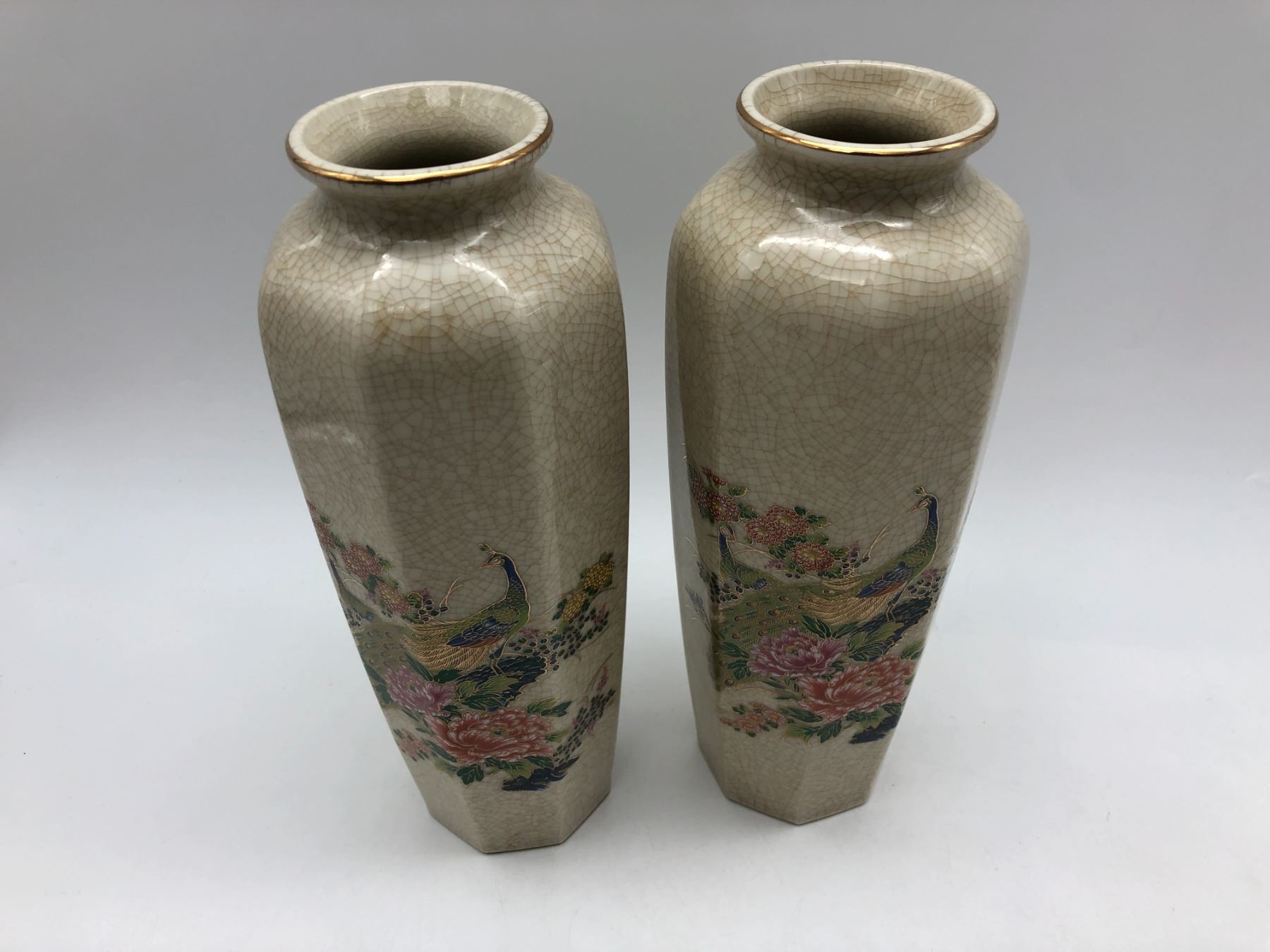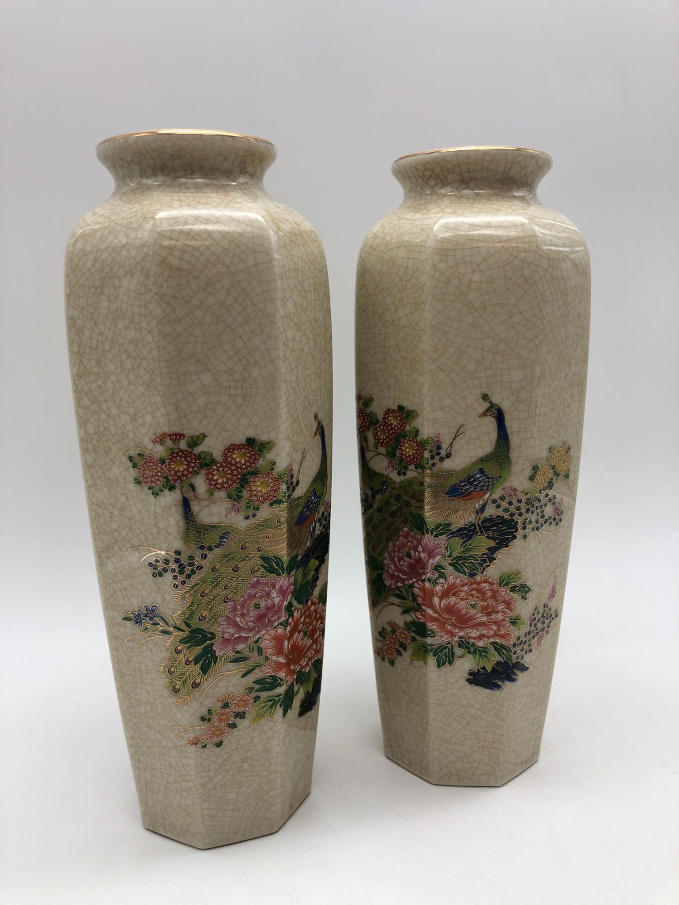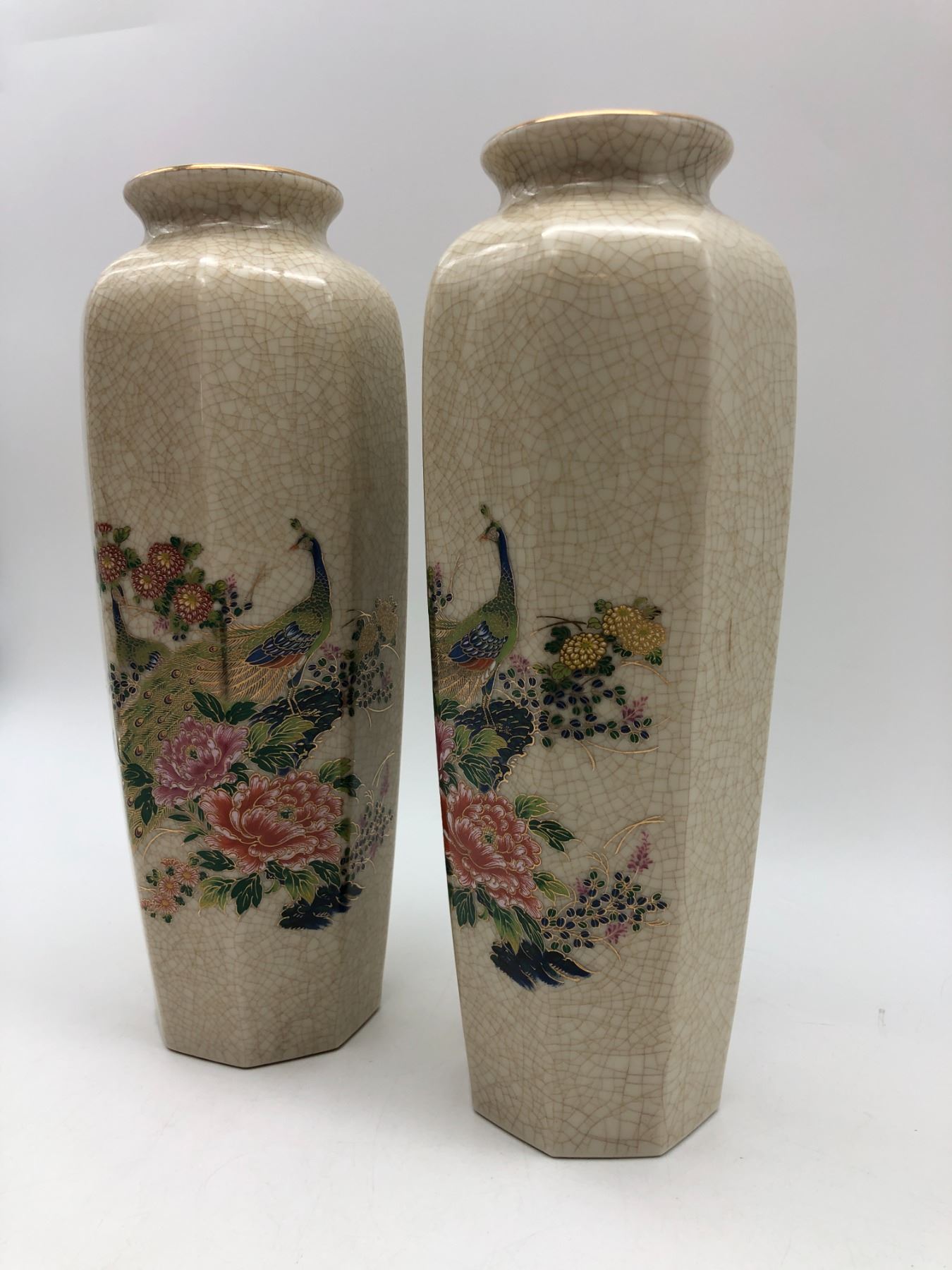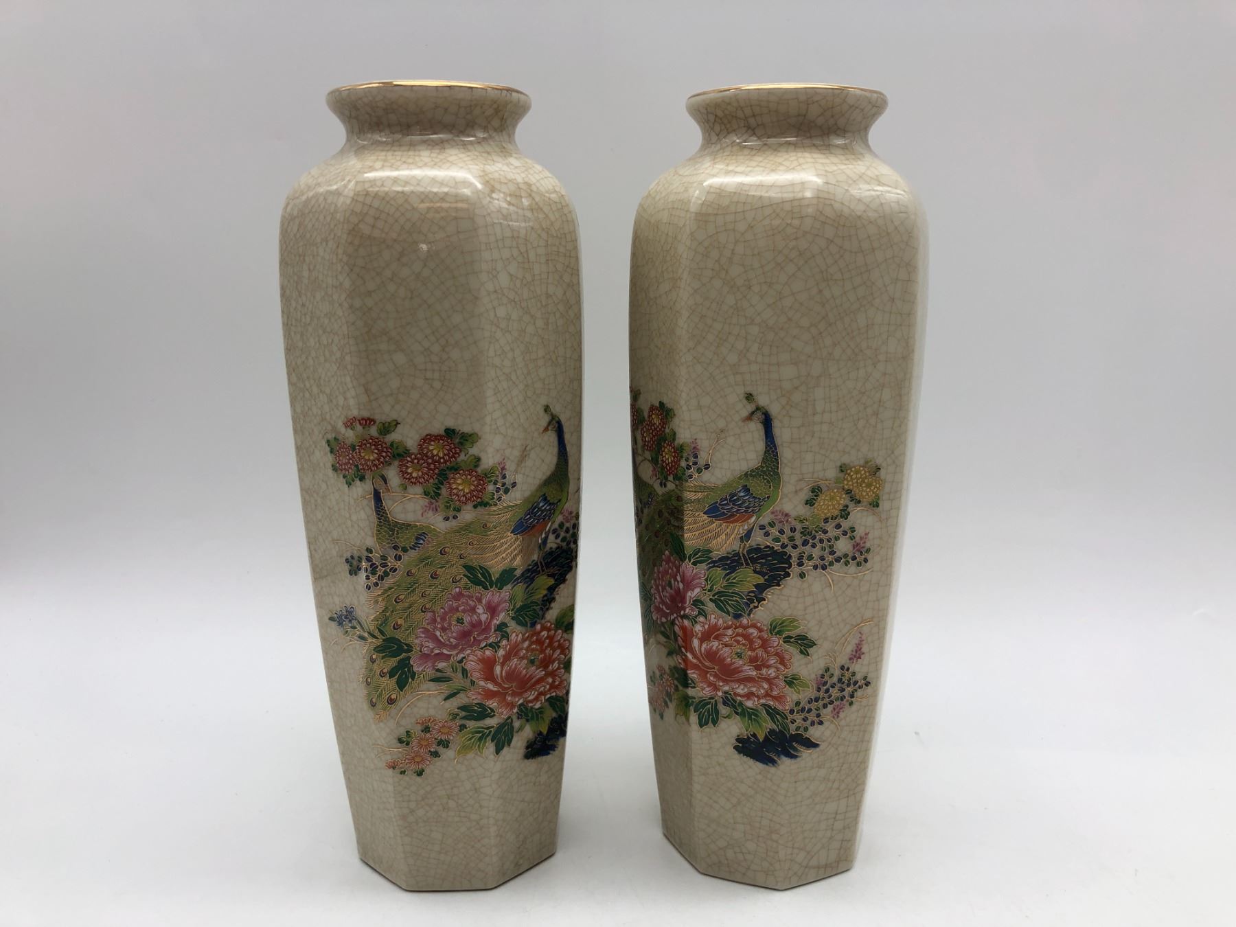 "Seizan Gama" - Set of 2 Authentic Japanese Vases - Approx. 11in