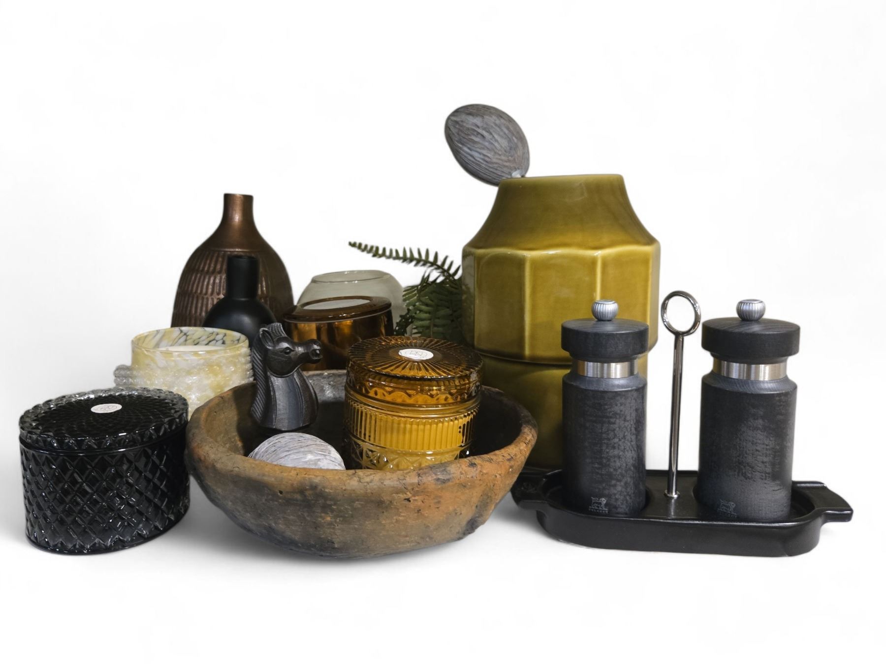 Set Decoration Lot Home Decor: Scented Candles, Peugeot Salt & Pepper, Vases and Decorative Items