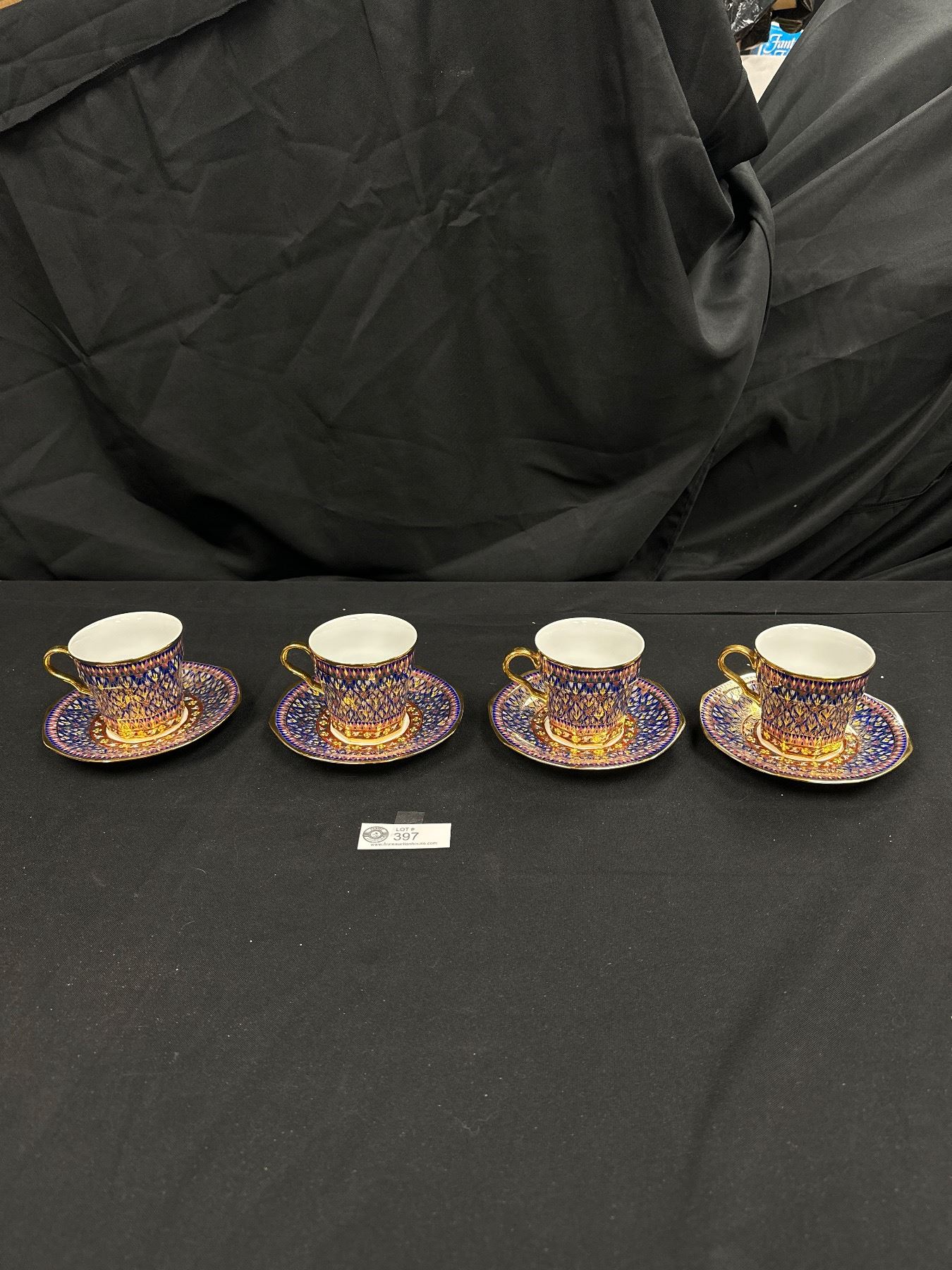 Set Of 4 Collectible Cup & Saucers. Hand Painted In Thailand
