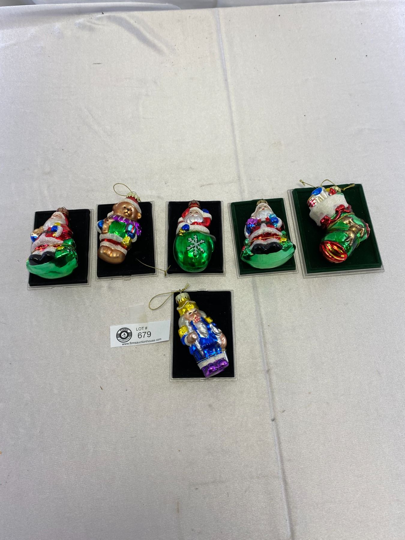Set Of 6 Vintage Liu Bao Glass Christmas Ornaments, Beautiful Bright Colours