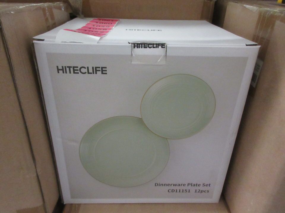 Set of 12 New Ceramic Dinnerware Plates - Ice Blue