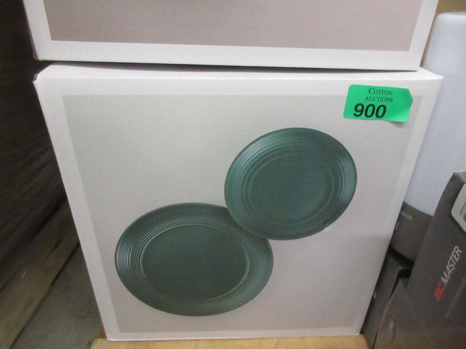 Dark Green. Six 8" salad plates and six 10.8" dinner plates. Dishwasher and microwave safe.